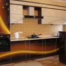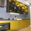 - Farbiges Glas. Farbige Fassaden verändern das Interieur der Küche radikal. Wenn die Küche nicht auf der Sonnenseite liegt, wird die Verwendung von orangefarbenem Glas für positive Stimmung sorgen.