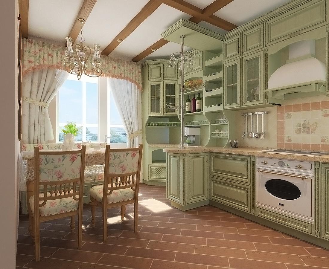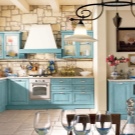 - Küche im provenzalischen Stil. Glasfassaden der Küche im Stil der Provence müssen einen Rahmen haben. Das Metallgitter über dem Glas sieht sehr schön aus.