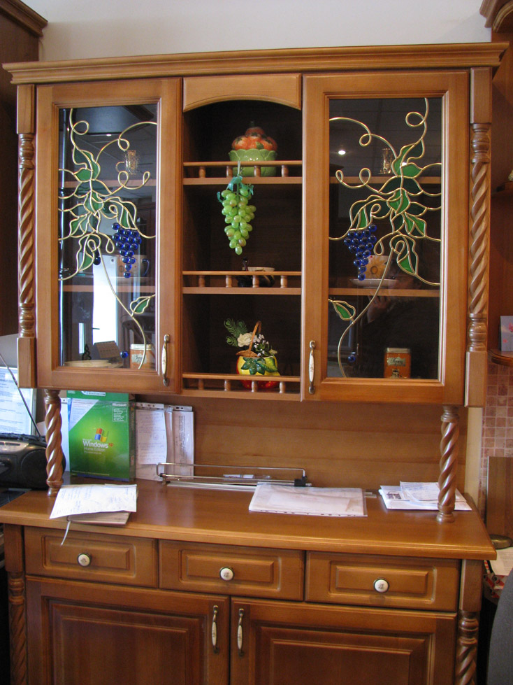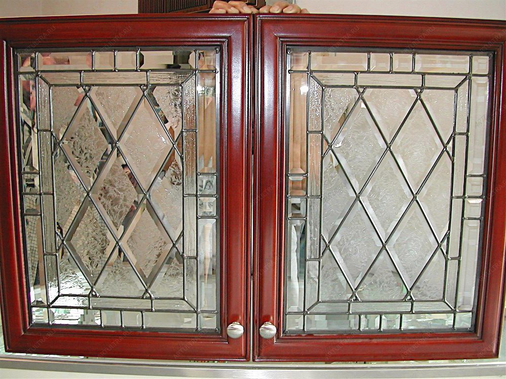 Oft ähneln die Türen der Schränke einem Fenster, das aus mehreren Glaseinsätzen besteht.
