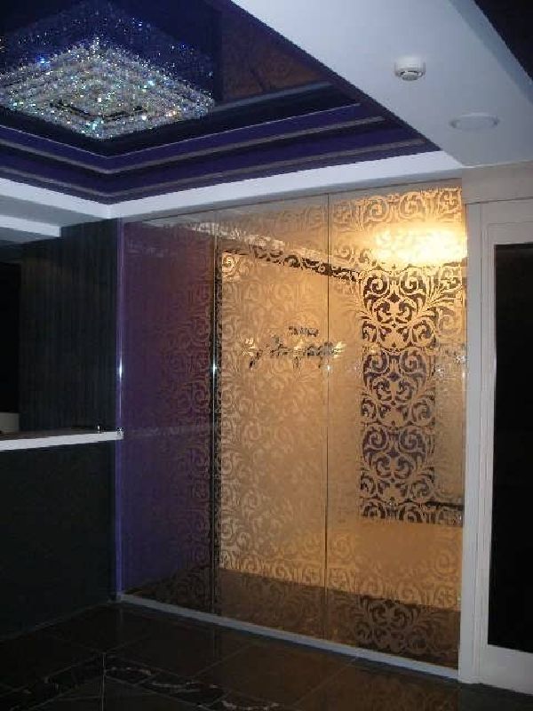 - Sandstrahlgeräte. Die Technologie kombiniert Transparenz und Opazität in einem Produkt. Normalerweise wird ein mattiertes Muster auf eine transparente Oberfläche aufgebracht. Es sieht wunderschön aus und überlädt das Design nicht.