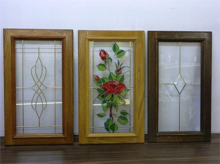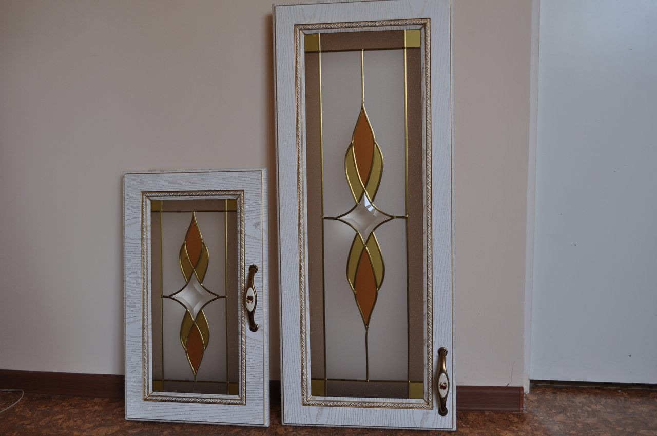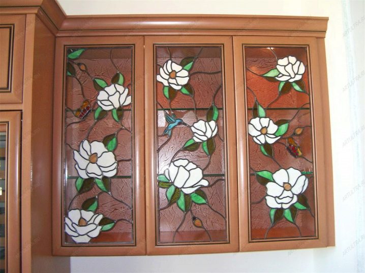 - Eine Vielzahl von Dekor. Gläser für Küchenschränke können opak, transparent, mit einem Muster sein.