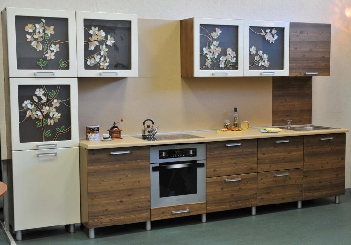 - Temperaturbeständigkeit. Die erhöhten Feuchtigkeits- und Temperaturschwankungen, die die Küche begleiten, beeinträchtigen den Zustand der Glaselemente des Schranks nicht.