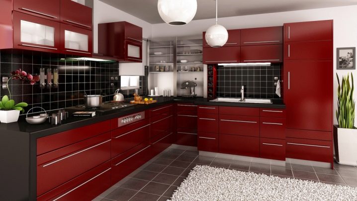 - Hightech-Küche. Glasfassaden sind ideal für die Erstellung von Hightech-Küchen. Helle Farben, Kontraste, glänzende Oberflächen schaffen eine Atmosphäre der Moderne. Schränke mit klarem Glas werden sich vor dem Hintergrund weinfarbener Möbel sehr gut eignen und sich perfekt in das Interieur einfügen.