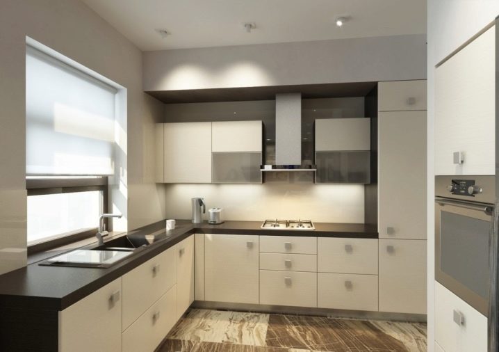 - Küche im modernen Stil. Wenn Sie der Besitzer einer kleinen Küche sind, wird der moderne Stil helfen, mit diesem Problem fertig zu werden. Kauf Schränke mit glänzenden weißen Fassaden. Sie werden den Raum optisch erweitern.Minimalismus, neutrale Töne, der Wechsel von scharfen Ecken mit weichen Kurven - all dies wird die Küche modern machen.
