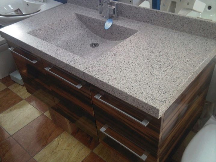 Langlebigere und langlebigere Produkte werden aus Stein gewonnen. Zur Herstellung solcher Sockel kann als Naturstein auch sein künstlicher Ersatz verwendet werden. Überraschenderweise sind die Möbel aus Kunststein von höherer Qualität. Es hat die besten physikalischen Eigenschaften. Ja, und sieht viel besser aus.Der einzige Nachteil ist, dass nur Steinsockel aus Stein sind, da dies ein sehr schweres Material ist.
