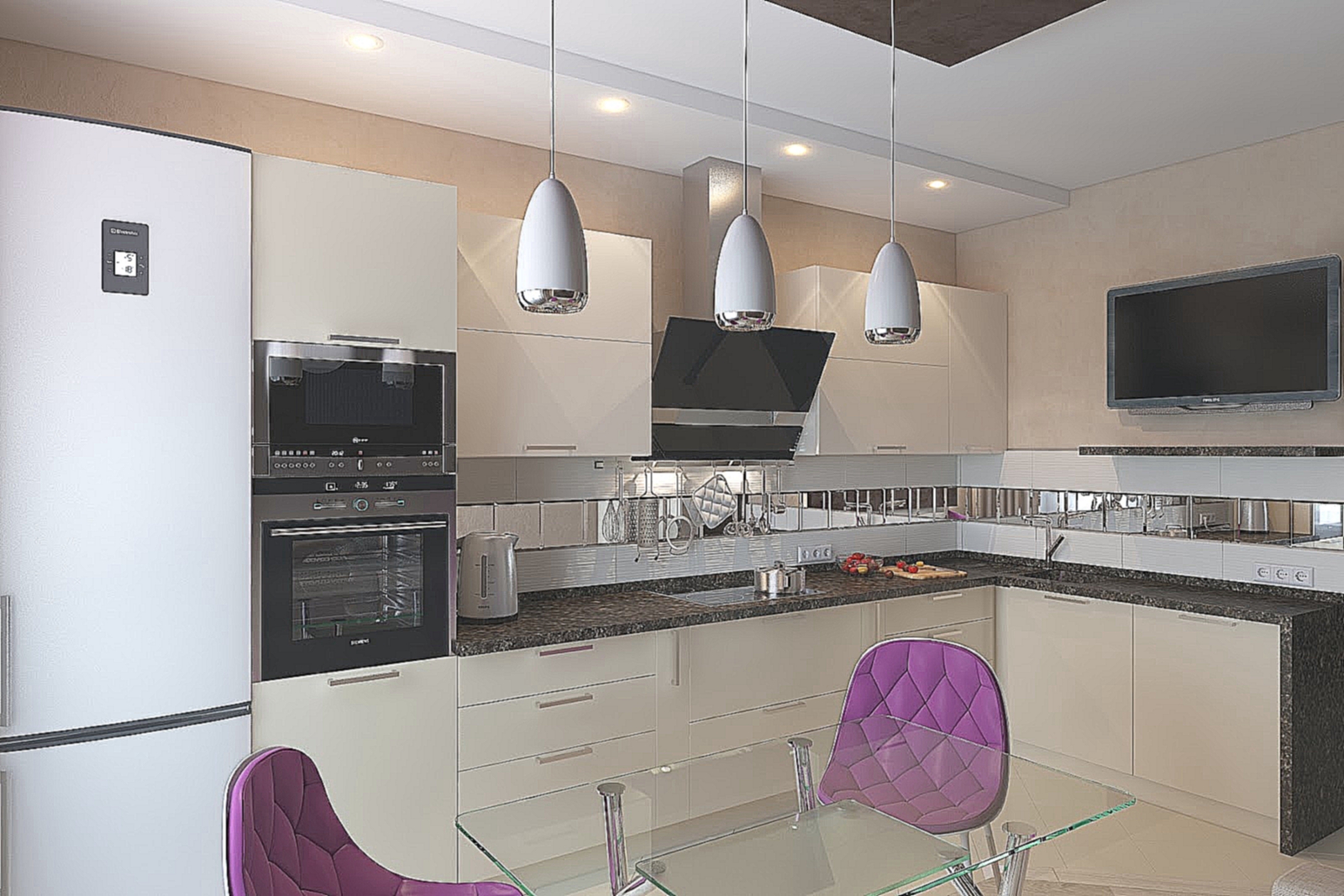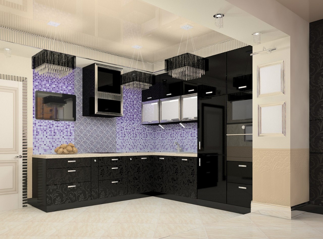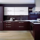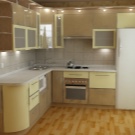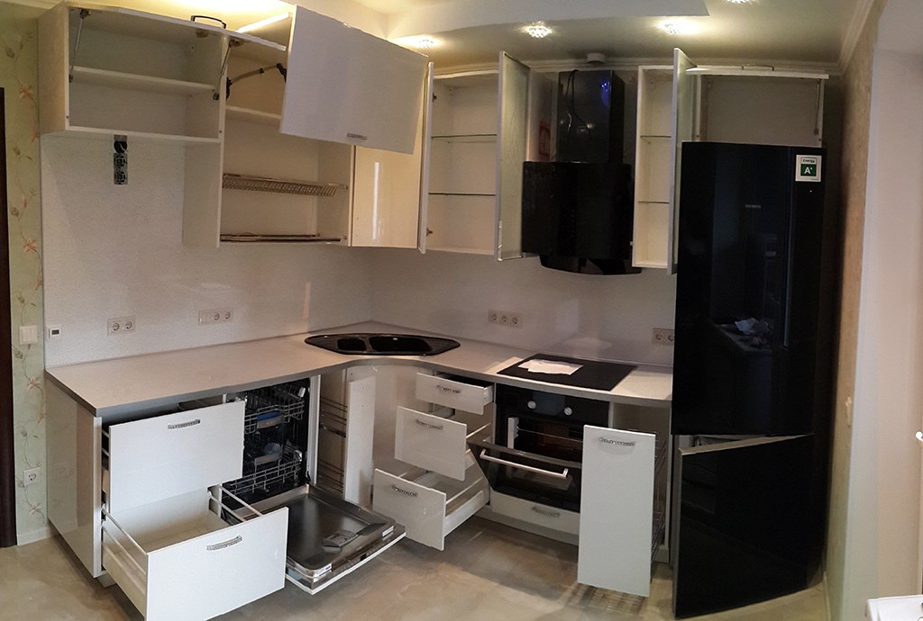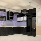 L-förmig im Headset kann entlang der Wände installiert werden. Schränke sind entlang zweier konvergierender Wände installiert. Diese Option wäre nicht nur für eine kleine Küche, sondern auch für ein größeres Zimmer geeignet.