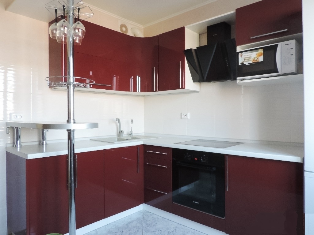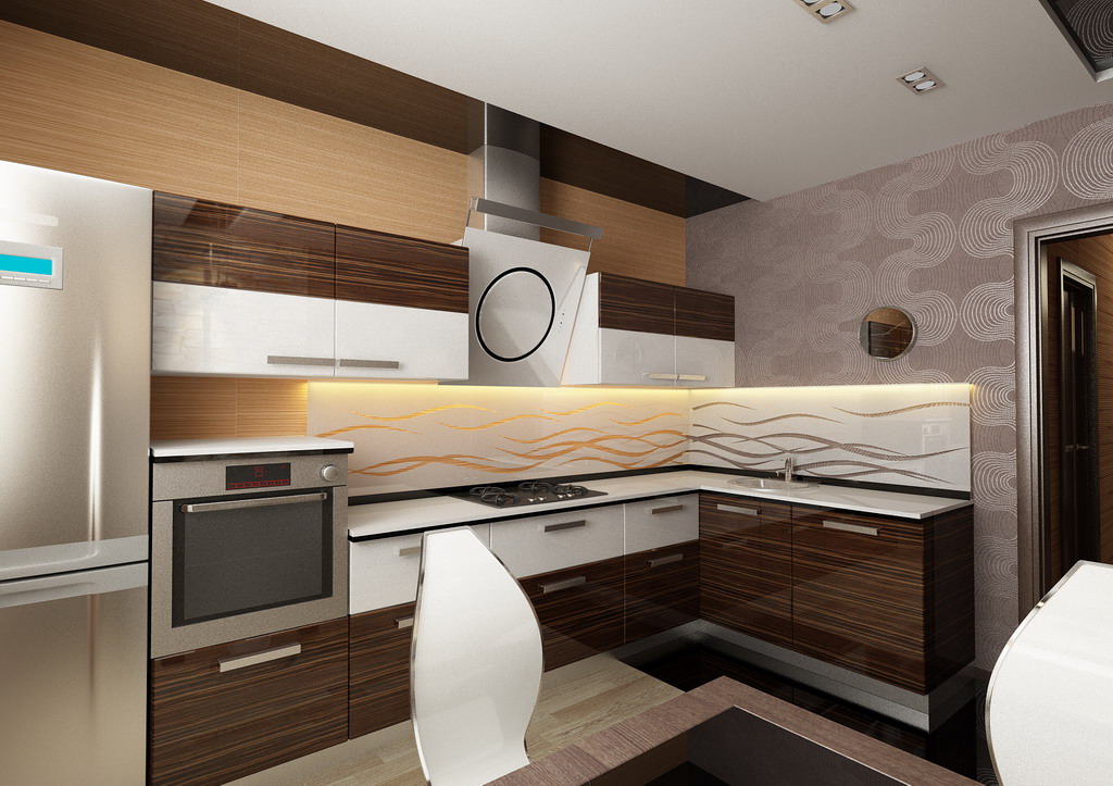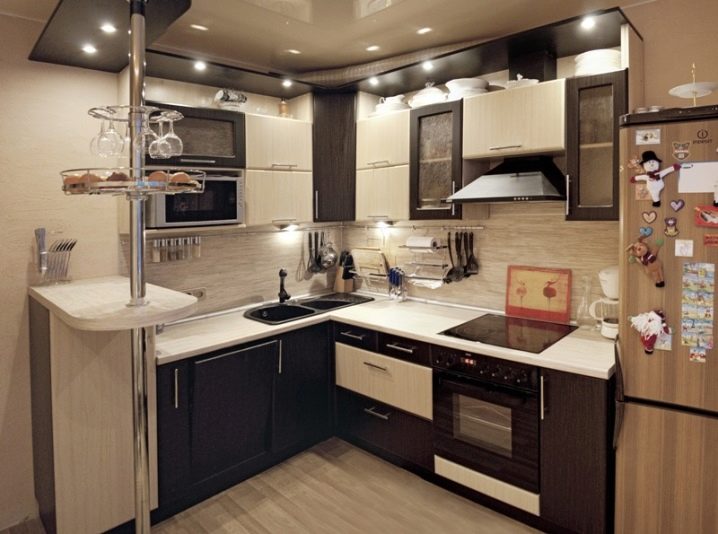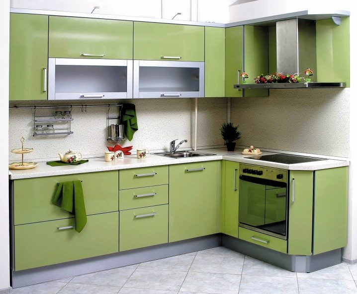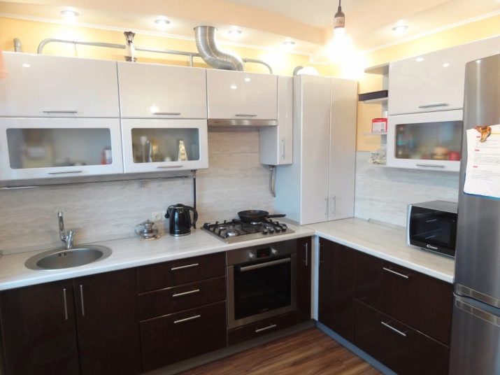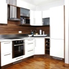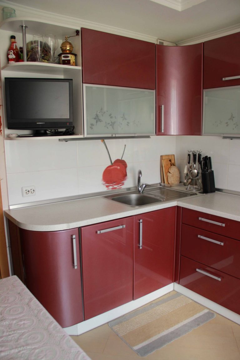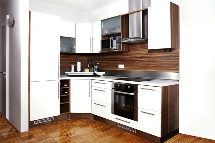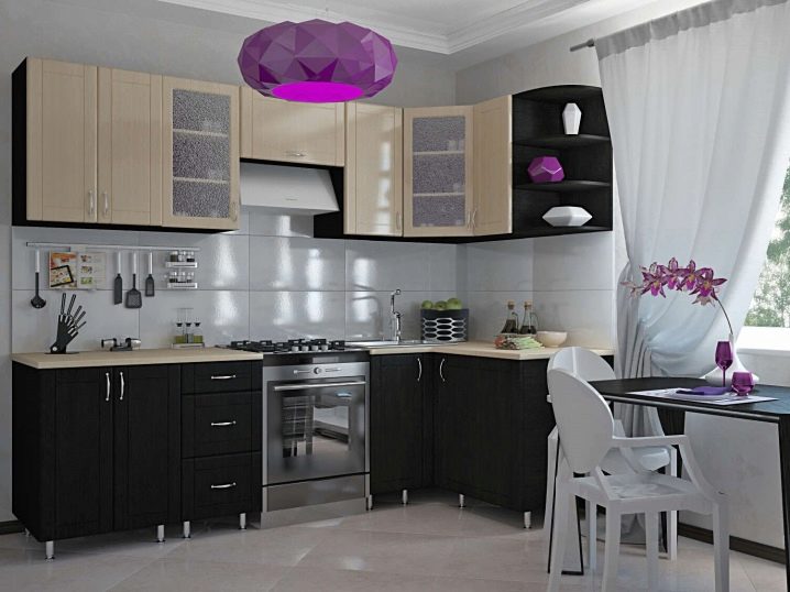 Wenn die Größe Ihrer Küche klein ist, wäre die beste Lösung eine Ecke. So werden die Möbel in der Lage sein, den funktionellsten und sichersten Platz zu schaffen, was sehr wichtig ist.