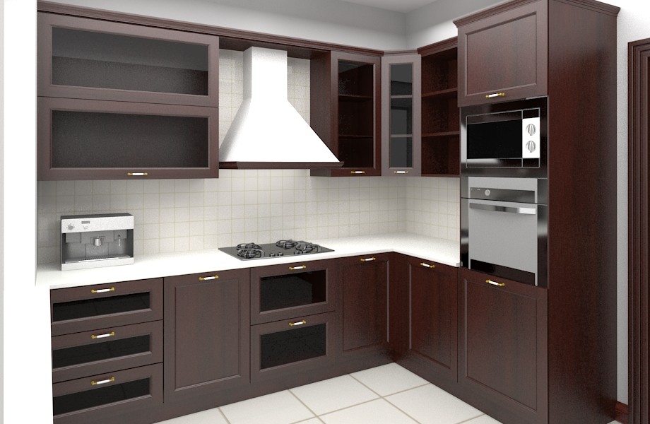Was den Stil der Küchenmöbel betrifft, bevorzugen sie oft die Klassiker. Schränke im klassischen Stil sind aus Naturholz, mit Schnitzereien verziert, mit schönen Armaturen ausgestattet.Die Farben sind überwiegend hellbeige. Die Eckküchen im klassischen Stil eignen sich eher für größere Räume, da die geschnitzte Fassade und die Fülle an Dekor den Raum verkleinern. Teilweise korrigieren Sie diese Situation und machen klassische Möbel eleganter und einfacher, Einsätze an den Glasfassaden zu helfen.