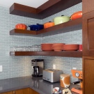- Geschirr für gewöhnlich in einem Wandschrank über der Spüle.
