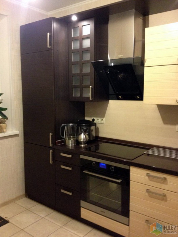 - Schrank, mit dem Sie Elemente der Küchenausrüstung (Haube, Säule, Rohre) maskieren können