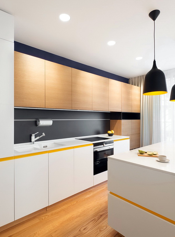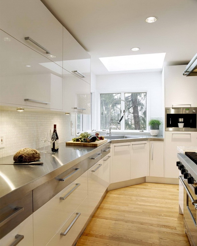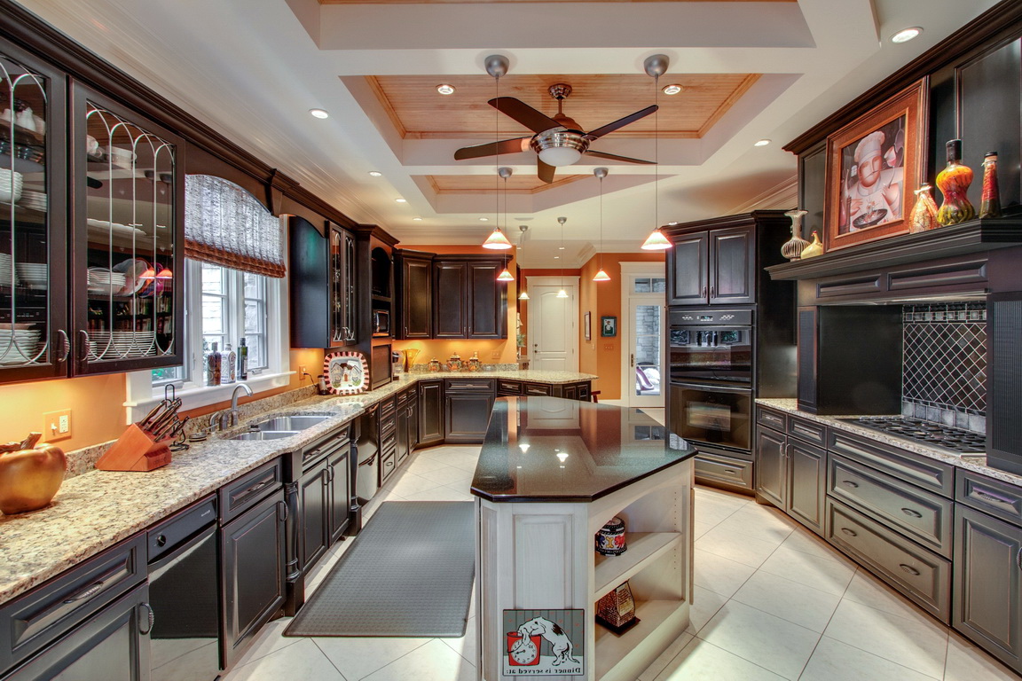 - Auch in der großen Küche können Sie die U-förmige Anordnung verwenden, die eine dritte Wand beinhaltet. Für solch eine Anordnung ist die Regel des Dreiecks leicht zu folgen.
