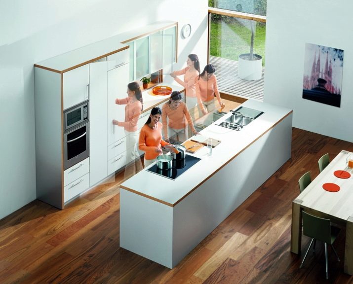 Nachdem Sie sich für die Auswahl und die Größe von Küchenschränken entschieden haben, ist es an der Zeit, über ihre richtige Anordnung nachzudenken. Diese Entscheidung kann durch die Regel des Dreiecks unterstützt werden, die normalerweise für die bequeme Platzierung von Möbeln in der Küche verwendet wird.