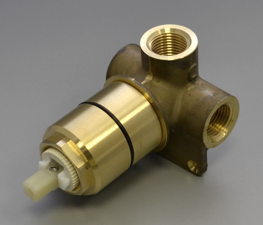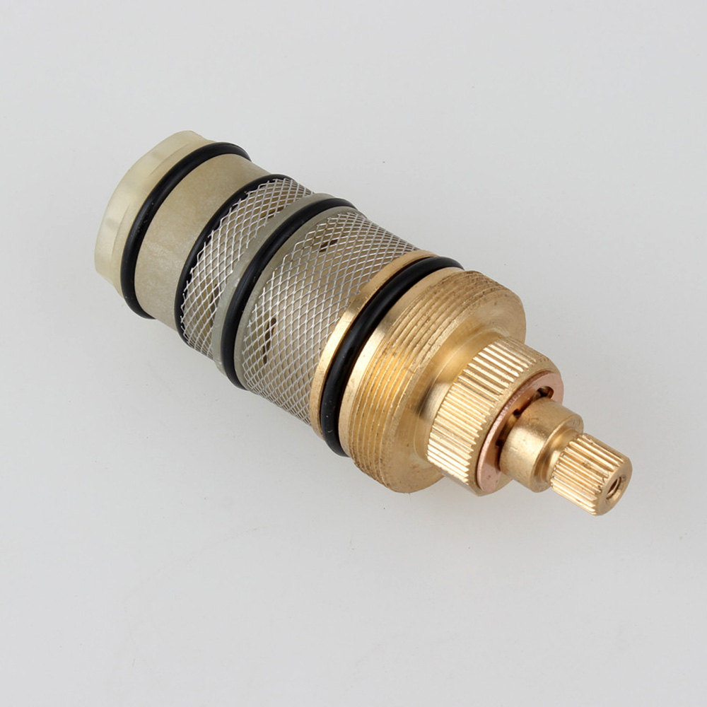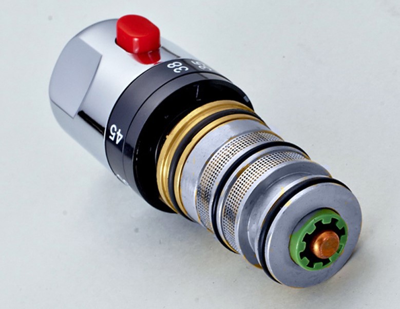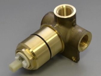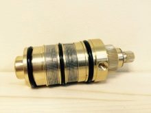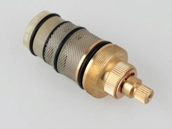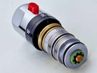 Es gibt Thermostatpatronen, die meistens auf Spültischmischern in einem Café oder in Duschkabinen von Hotels installiert sind. Der Thermostat hält die manuell eingestellte Temperatur aufrecht und hält gleichzeitig einen konstanten Druck aufrecht.Thermostatische Kartuschen sind sehr bequem in Häusern, in denen Kinder oder ältere Menschen sind. Das Design schützt vor Verbrennungen, wenn die Zufuhr von kaltem Wasser plötzlich stoppt. Es gibt spezielle Patronen für Wasserhähne in der Dusche, die Divertor genannt werden. Der Wasserverteiler arbeitet in 4-5 Modi. Dementsprechend unterscheiden sich die Gerätedetails von anderen Kassetten.