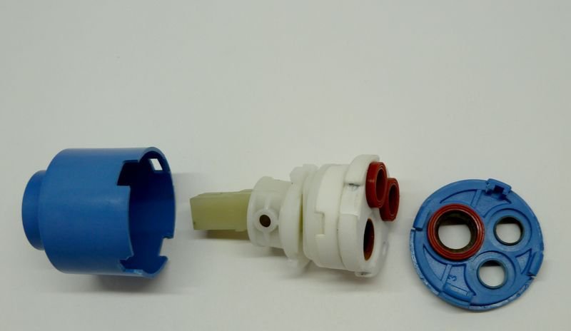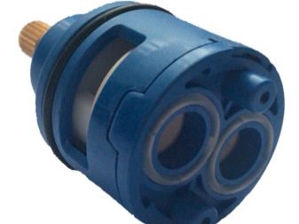 Die Kartusche ist einer der wichtigsten Teile des Mischers und erfüllt eine sehr wichtige Funktion. Ohne dieses Teil wird das System nicht funktionieren. Es ist die Kartusche, die den Wasserversorgungsdruck und seine Temperatur regelt. Äußerlich sieht es wie ein kleiner Plastikzylinder aus, es hat drei Löcher an der Unterseite und einen Schaft an der Spitze. Durch diese Löcher fließt heißes und kaltes Wasser.