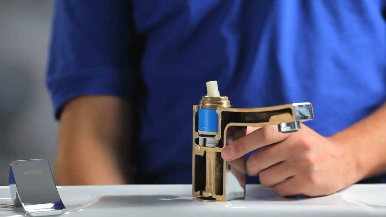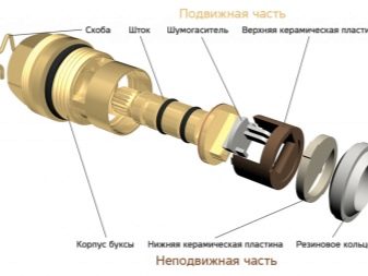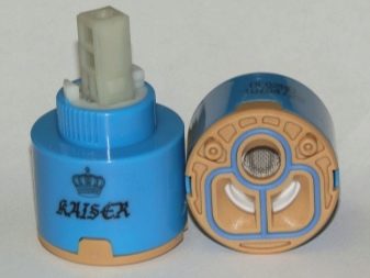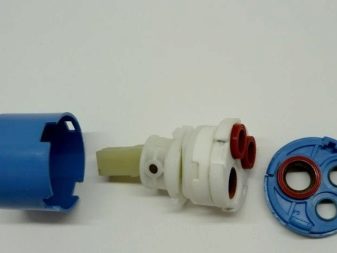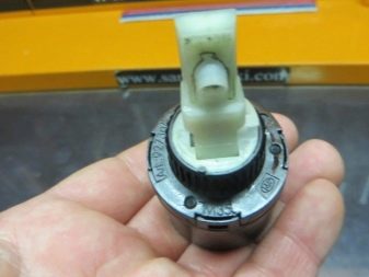Der innere Teil des Teils ist ein Metall- oder Keramikschloss. Keramische Patronen gelten als langlebig. Sie enthalten zwei oder drei Keramikscheiben, die fest fixiert sind. Diese Platten haben drei Löcher zum Einstellen von Temperatur und Druck. Es gibt weniger Probleme mit dem keramischen Element, die Einstellung der Wasserzufuhr ist glatt und es arbeitet fast geräuschlos. Wenn jedoch Sand zwischen die Platten gelangt und die Keramikpatrone nicht mehr funktioniert, muss sie ausgetauscht werden. Der Artikel unterliegt keiner Reparatur.