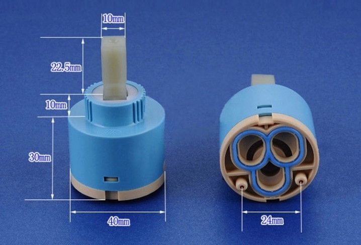 Für jedes Mischpultmodell wird empfohlen, bestimmte Modelle zu kaufen. Bei der Auswahl einer Patrone sollten Sie immer auf den Durchmesser achten, da der Durchmesser für die Größe des Produkts verwendet wird. Die gängigsten Größen sind also 28, 32 und 35 mm. Sie sind ideal für Armaturen im Badezimmer für ein Waschbecken oder in der Küche. Im Badezimmer für Wasserhähne werden oft Patronen mit einem Durchmesser von 40 bis 46 mm verwendet.