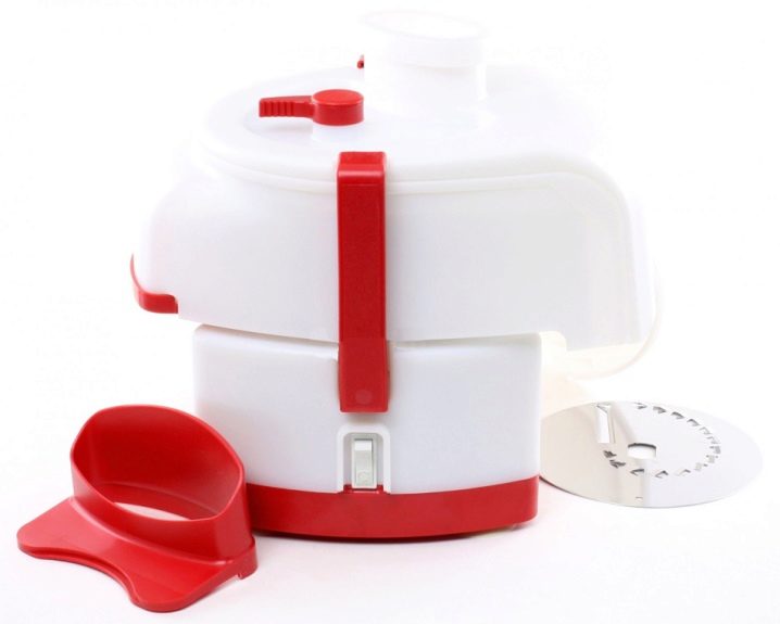 Bei diesem belarussischen Gerät ist es durchaus möglich, mit dem Zerkleinern eines Kohlkopfes von 2,5 kg innerhalb einer Minute fertig zu werden. Verbraucher schätzten die Fähigkeit, Kuchen in diesem Gerät gewaltsam zu entleeren. Nicht jeder Entsafter verfügt über eine solche Funktion, aber dieses universelle Modell ist nicht nur für den Hobbygärtner, sondern auch für den Landwirt, wo Produkte in sehr großen Mengen geerntet werden, ein großartiger Helfer.