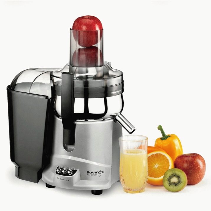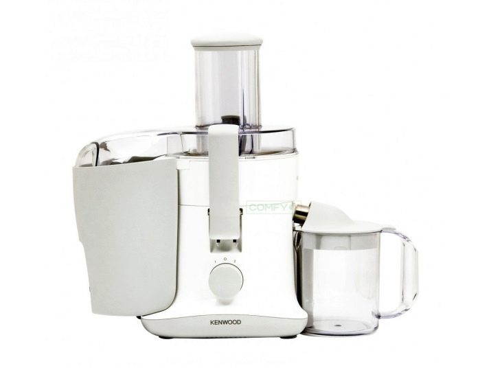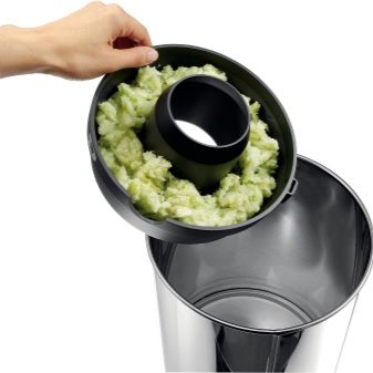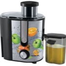 Bei beträchtlichen Geschwindigkeiten wird der Saft gequetscht und der gesamte Zellstoff unter dem Einfluss der Geschwindigkeit beginnt sich entlang des Zentrifugenkörpers nach oben zu bewegen. Somit wird der Tank von überschüssigem Ölkuchen gereinigt. Es sollte beachtet werden, dass es für jedes Produkt eine Geschwindigkeit gibt, bei der sich der Abfall so weit wie möglich zum gewünschten Punkt bewegt. Daher sind fast alle dieser Modelle mit Drehzahlschaltern ausgestattet, die es ermöglichen, die Drehzahl für die gewünschte Frucht einzustellen.