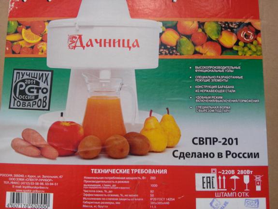 Natürliche frische Säfte enthalten Vitamine, die von der Natur geschaffen wurden, um unsere Gesundheit bei Ihnen zu erhalten. Model Dachnitsa wird Sie mit seinen offensichtlichen Vorteilen überraschen. Der Hersteller von JSC "Spektr-Pribor" garantiert hohe Qualität und die angegebenen Eigenschaften, gewährleisten eine lange und sichere Nutzung.