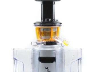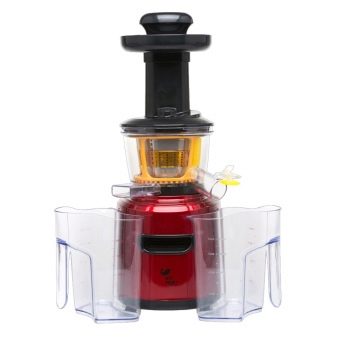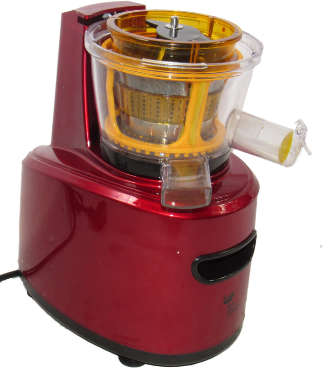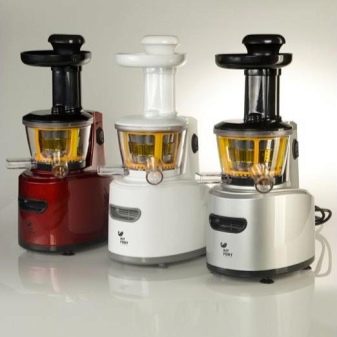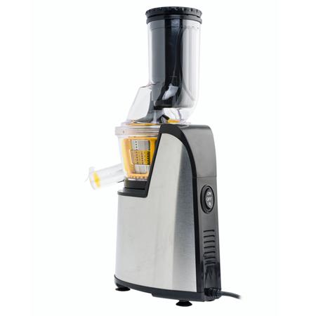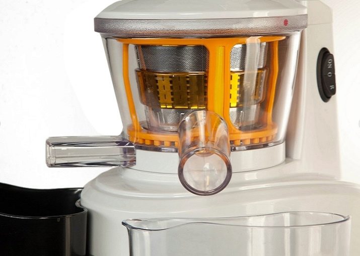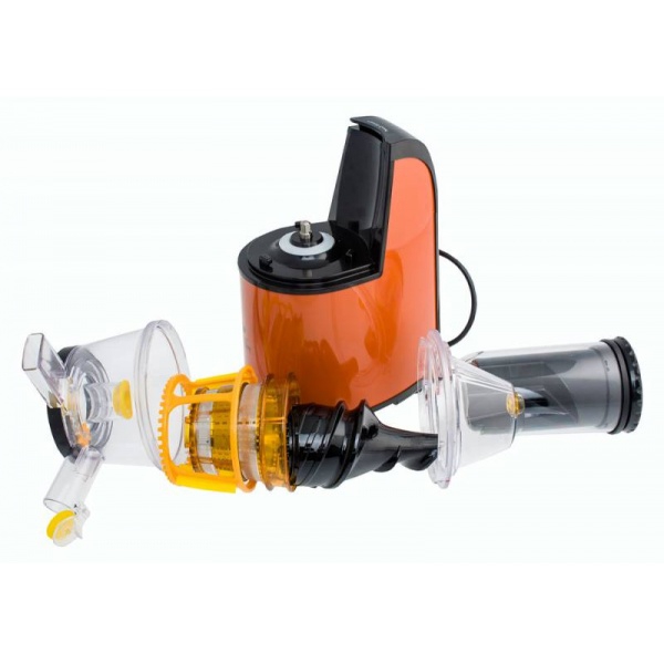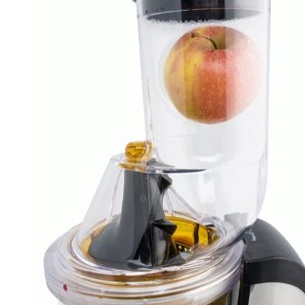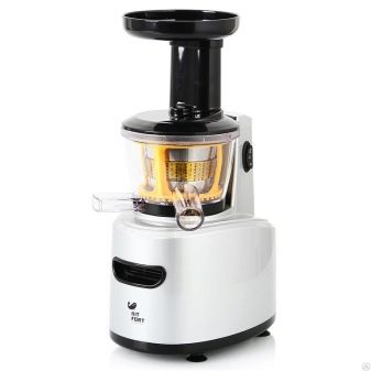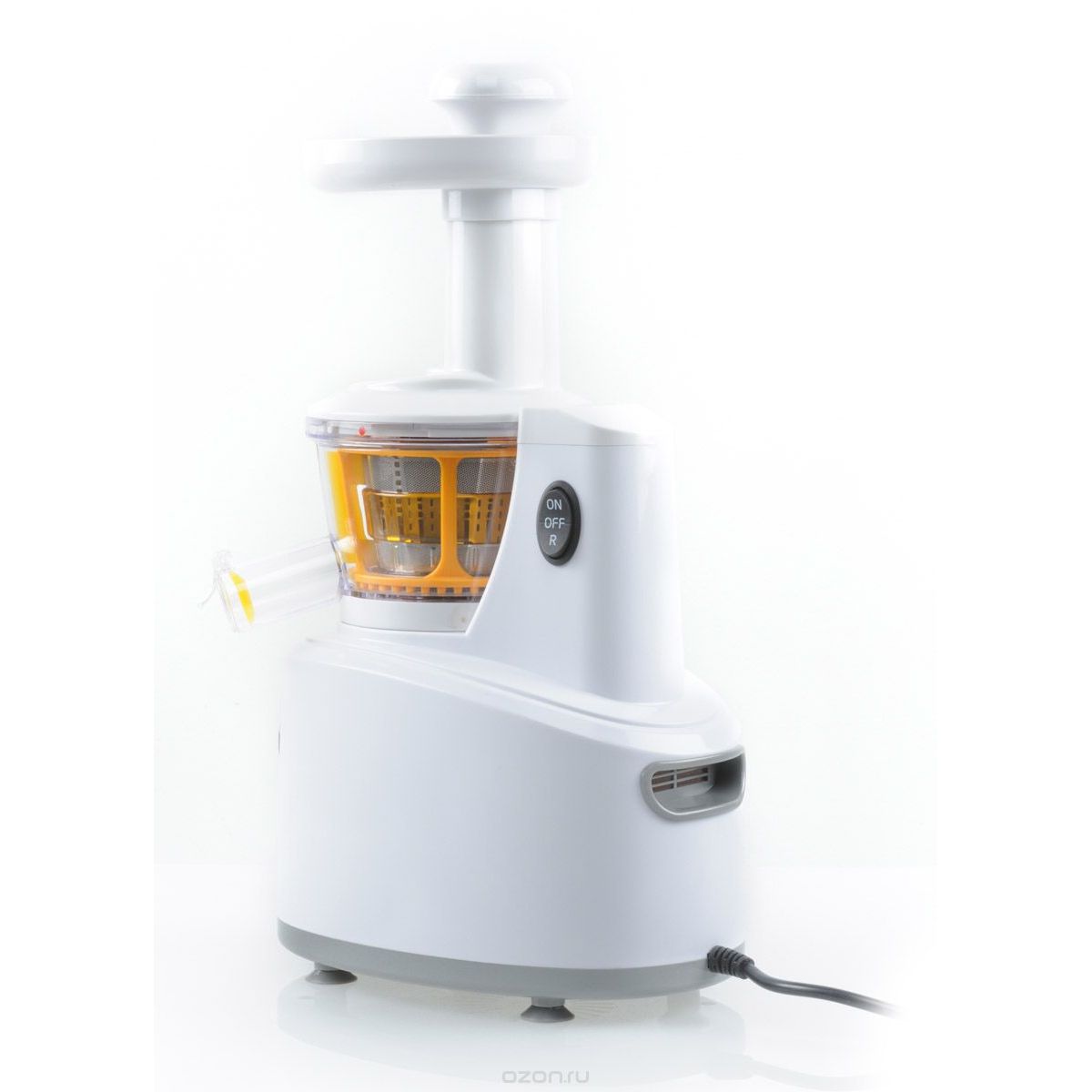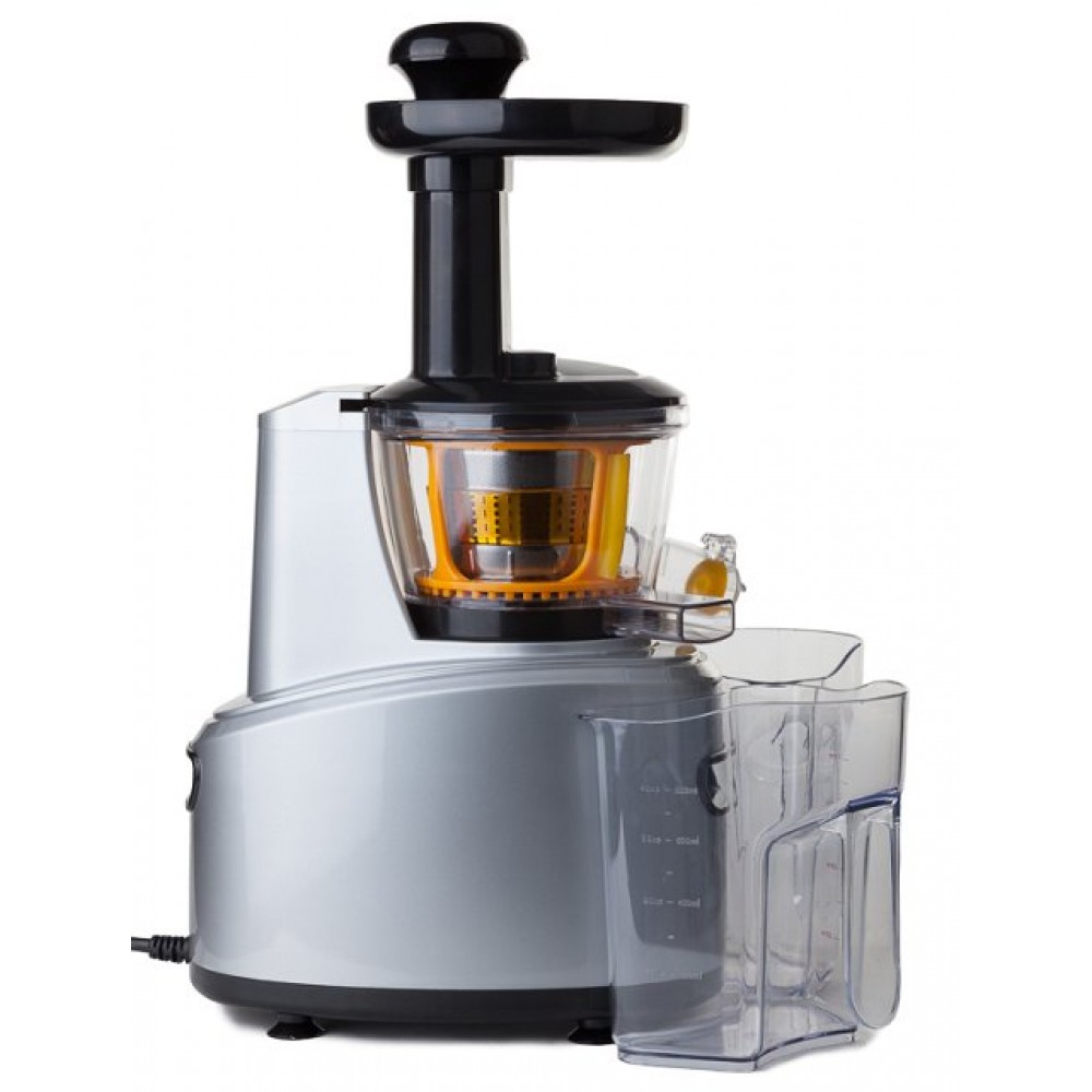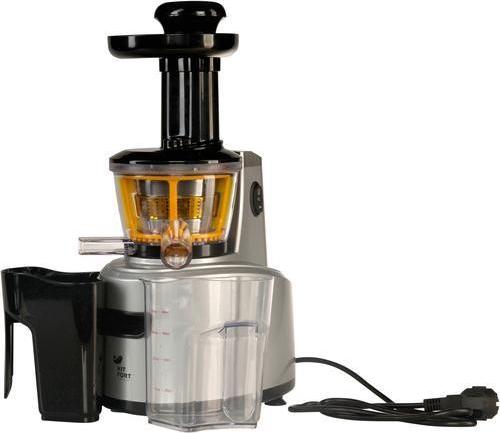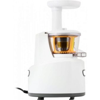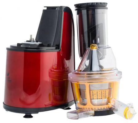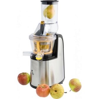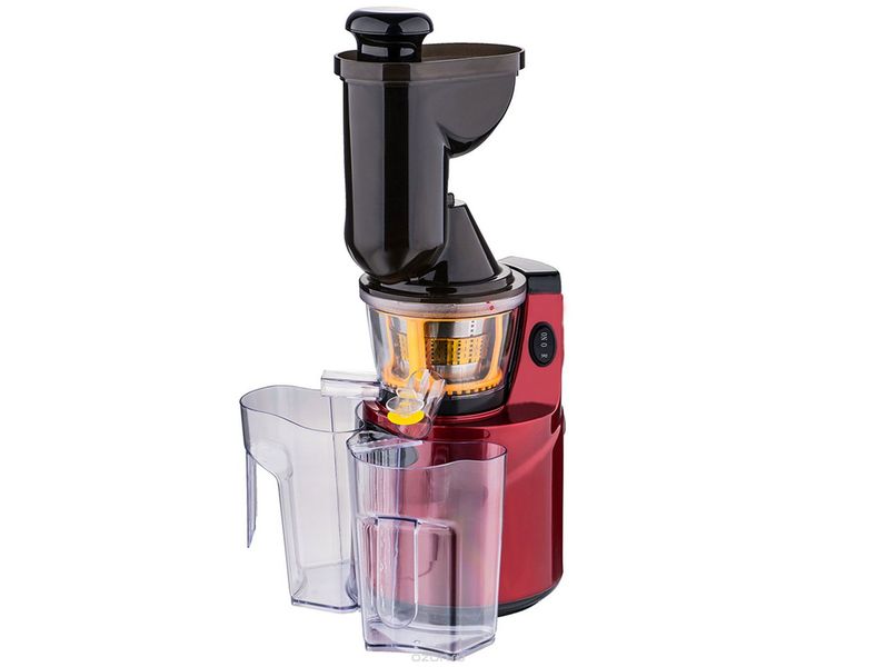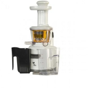 Die Budget-Option, es ist auch die beliebteste Produktlinie Schraubenbohrer Entsafter. Eine konstante Leistung von 150 W und eine Rotationsgeschwindigkeit von 80 Umdrehungen pro Minute ermöglichen eine qualitativ hochwertige dreistufige Rotation bei niedrigen Geschwindigkeiten, was sich vorteilhaft auf die Herstellung einer kleinen Menge des Produkts auswirkt. In diesem Fall wird der Großteil der Zeit für die Vorbereitung und das anschließende Waschen aufgewendet.