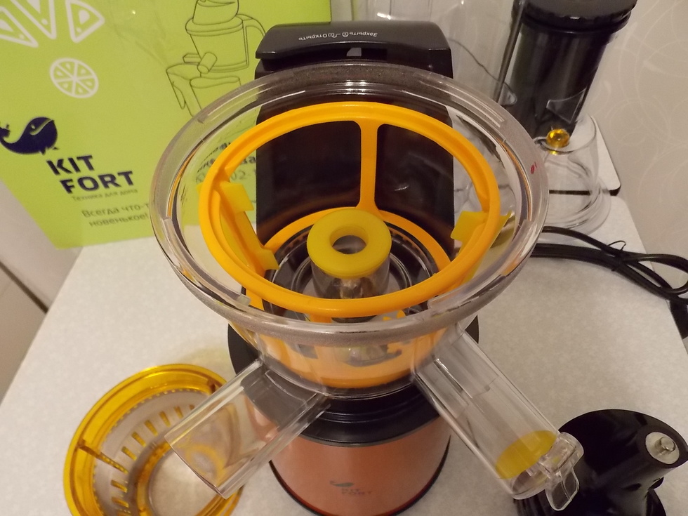 Der Gesamteindruck von Kitfort-Produkten ist eine solide hergestellte und zuverlässig zusammengebaute Ausrüstung mit einer vielseitigen und praktischen Erscheinung. Das Gleiche gilt für die interne Komponente der Entsafter.