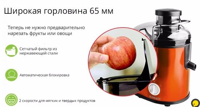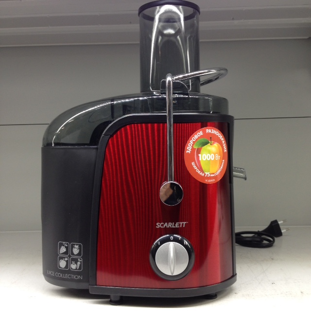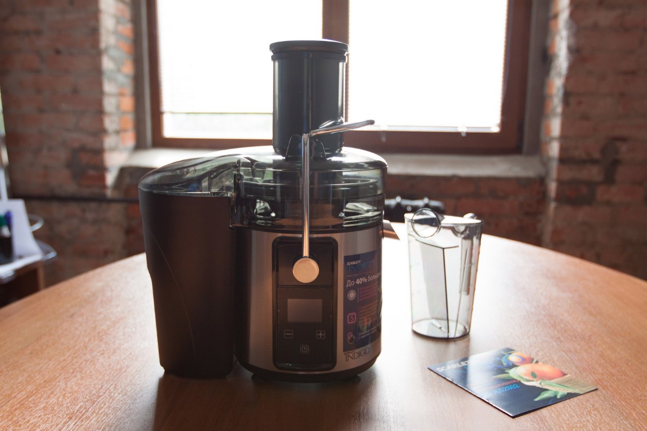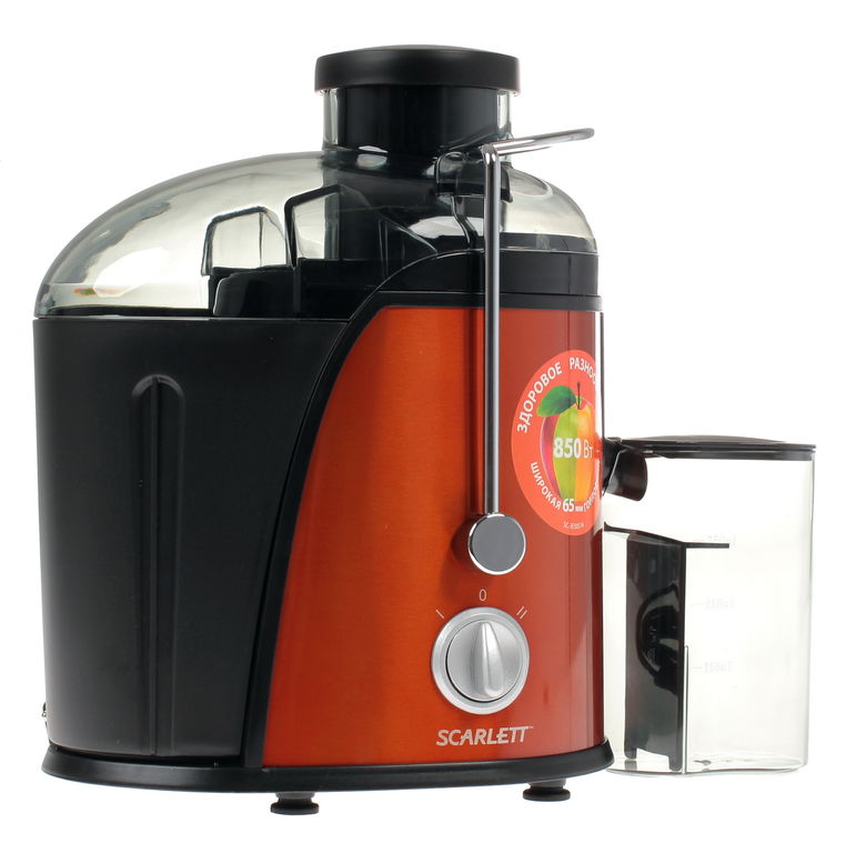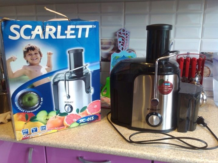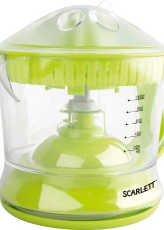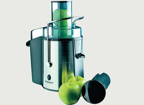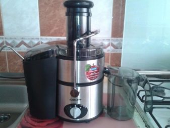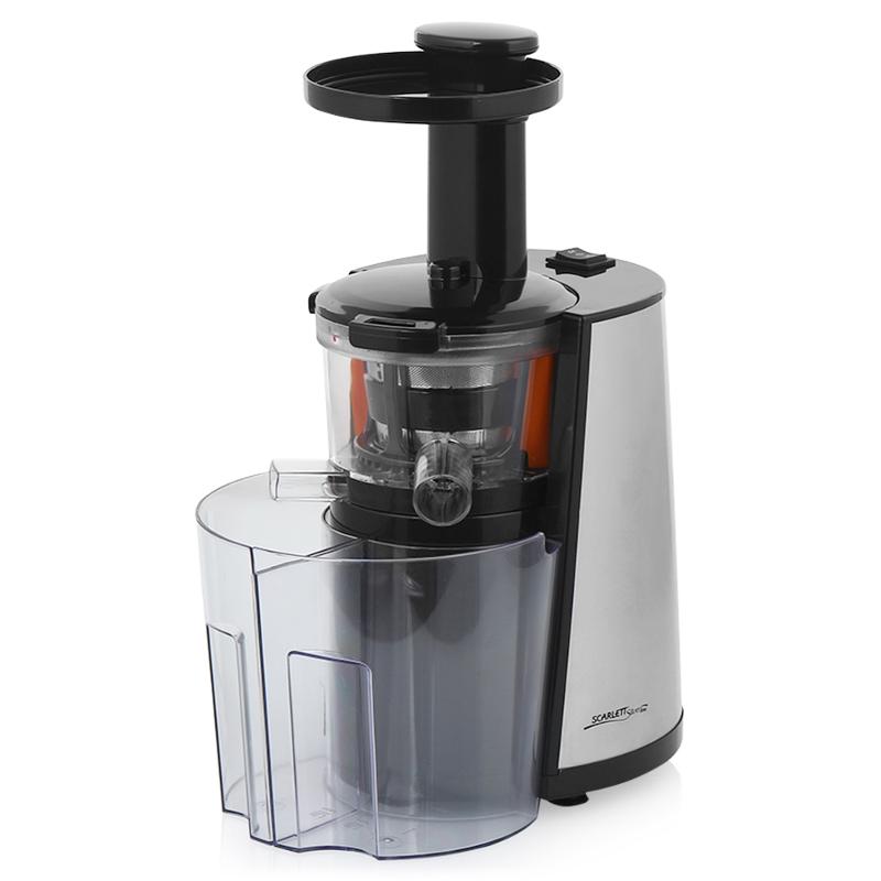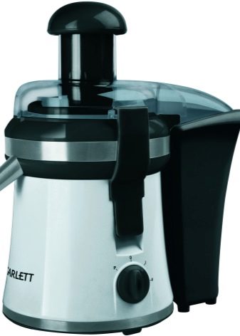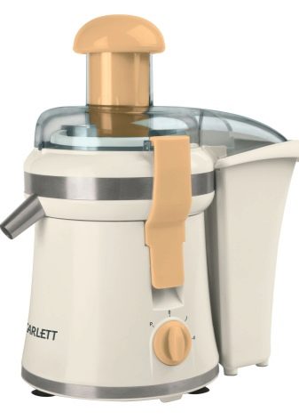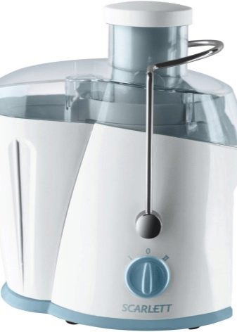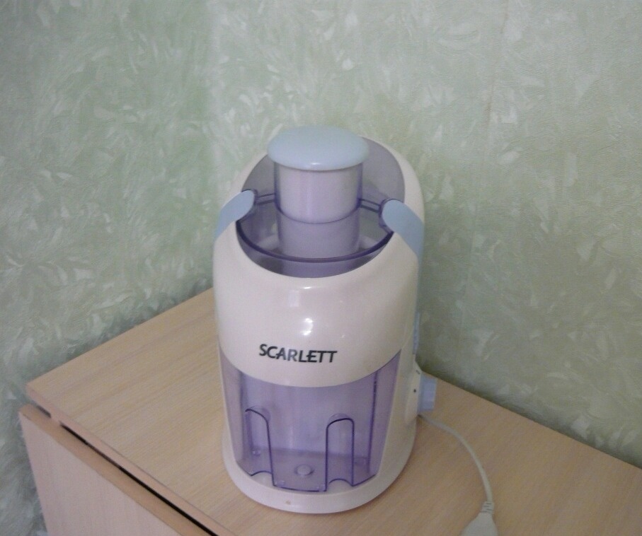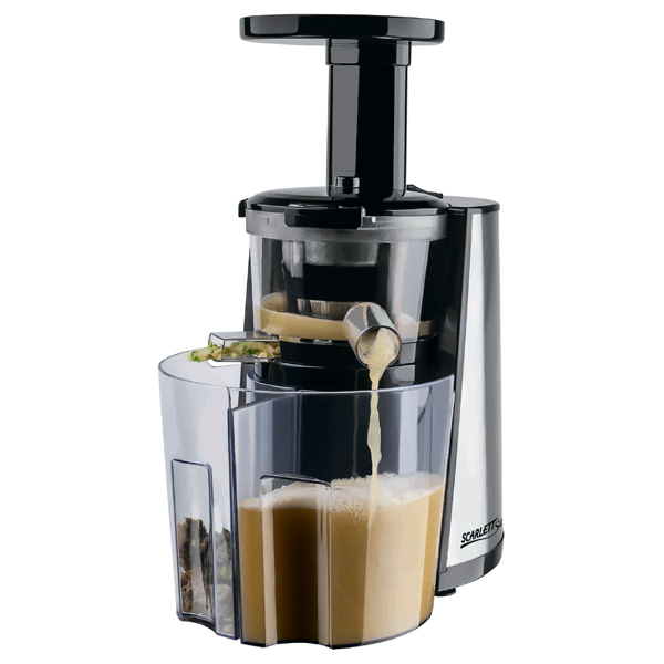 Haushalts-Universalgerät zum Auspressen von Saft Scarlett ist für den Heimgebrauch konzipiert, mit einem leichten Körper ausgestattet. Es kann reibungslos für zehn bis zwanzig Minuten arbeiten. Während dieser Zeit ist die Ausgabe etwa drei Gläser frisch. Ein weiterer Betrieb ist unerwünscht, um ein Ausbrennen des Geräts zu vermeiden.