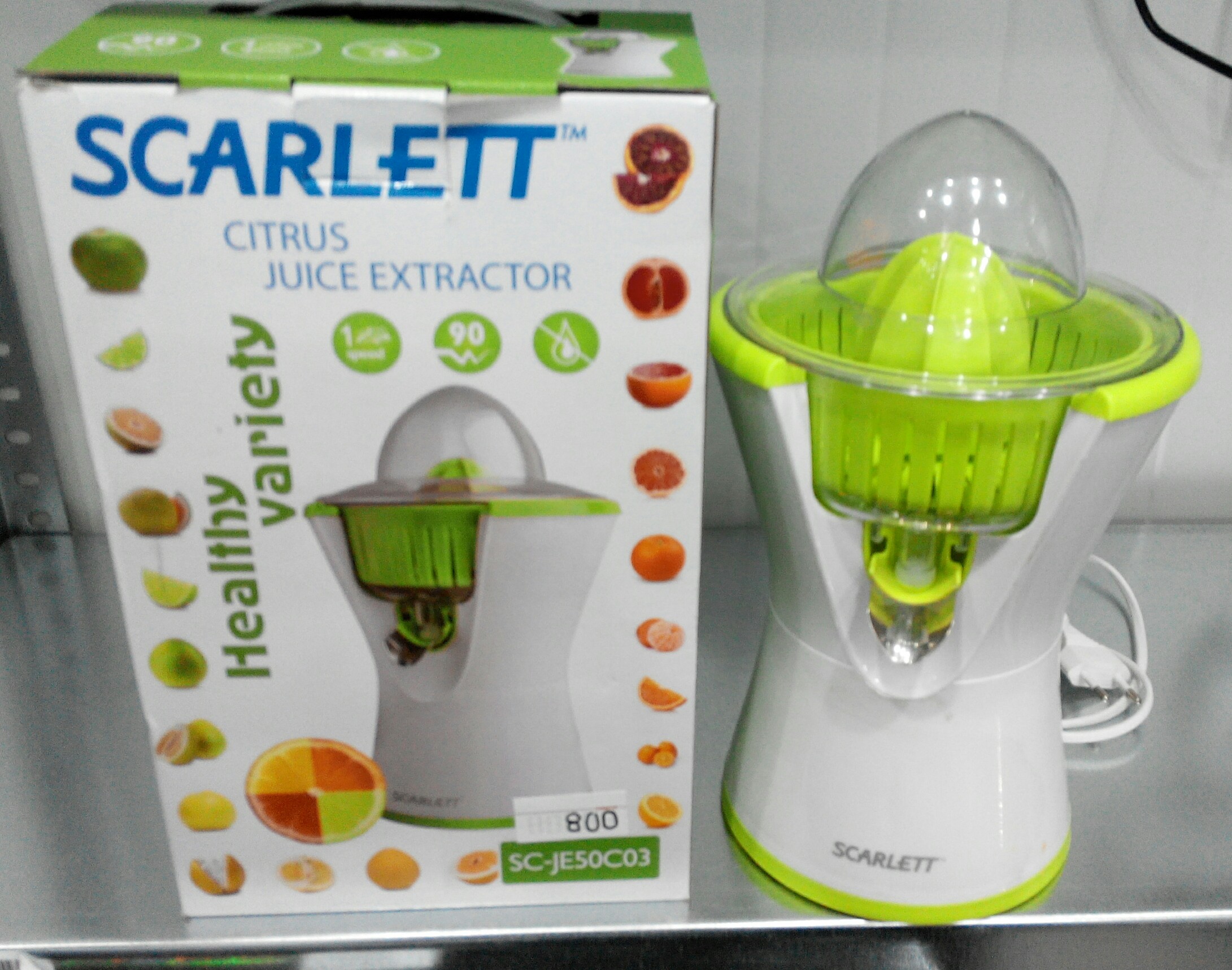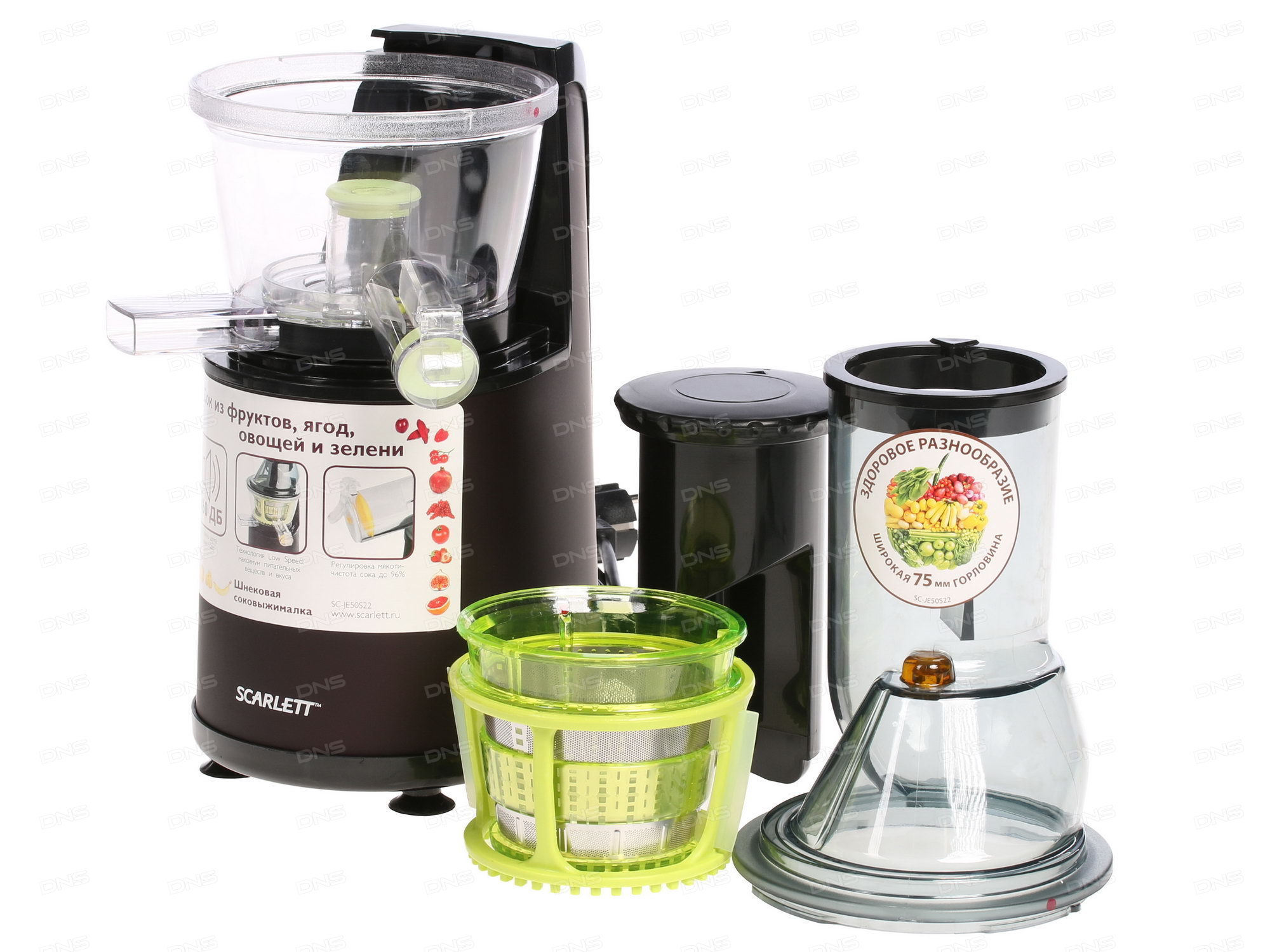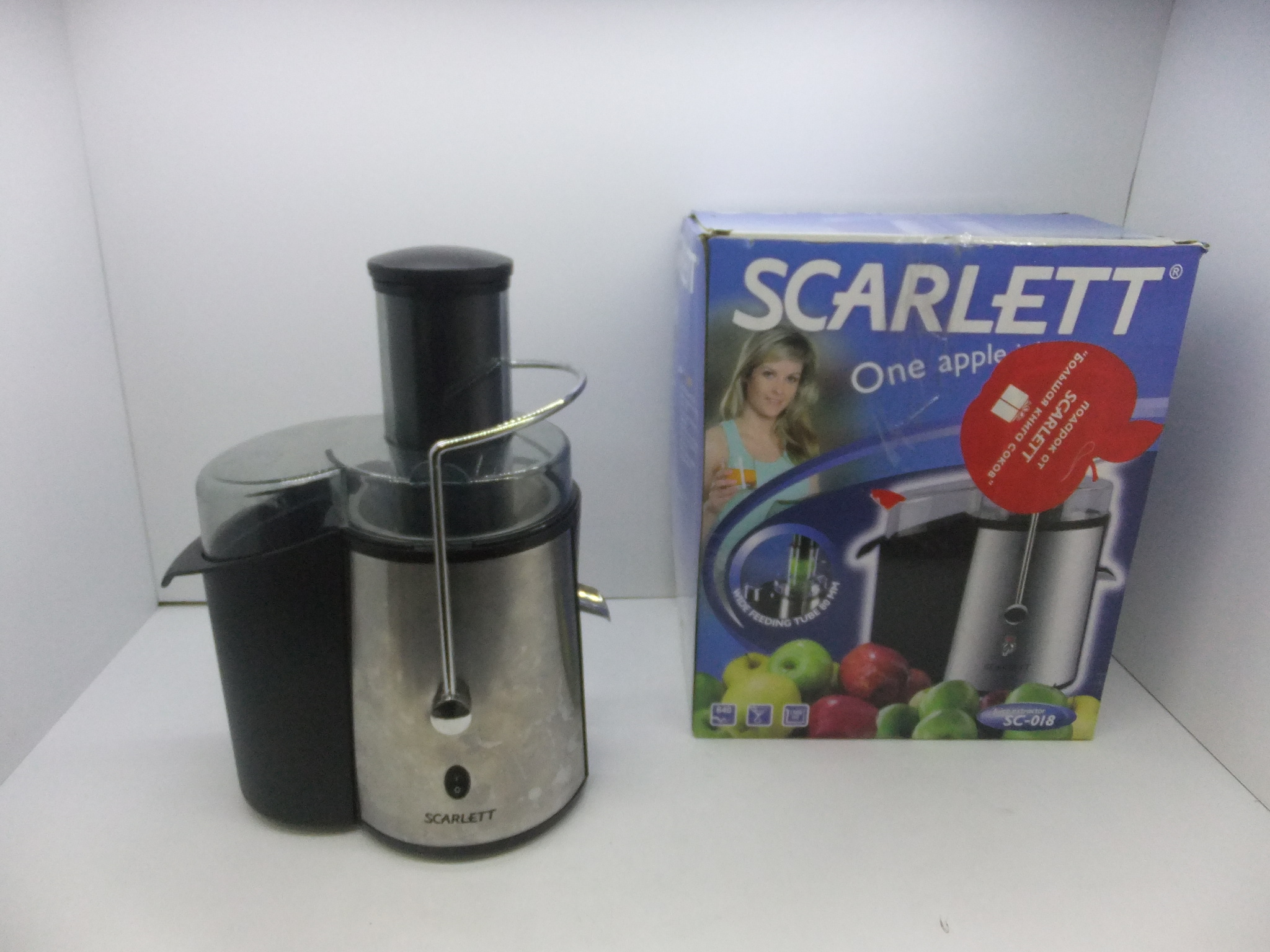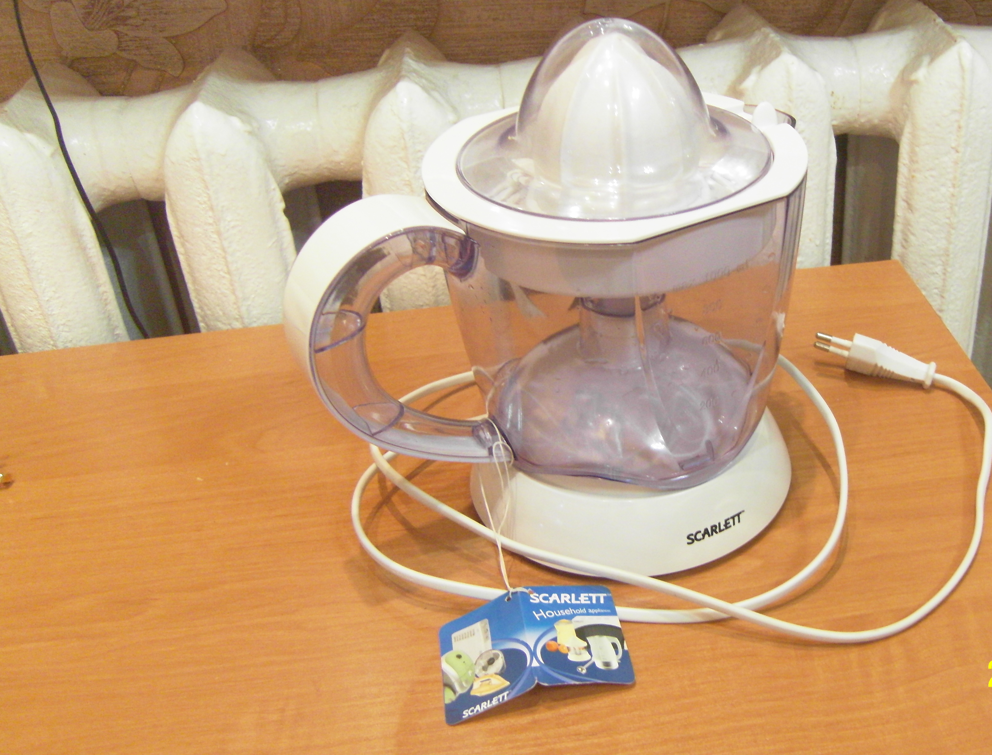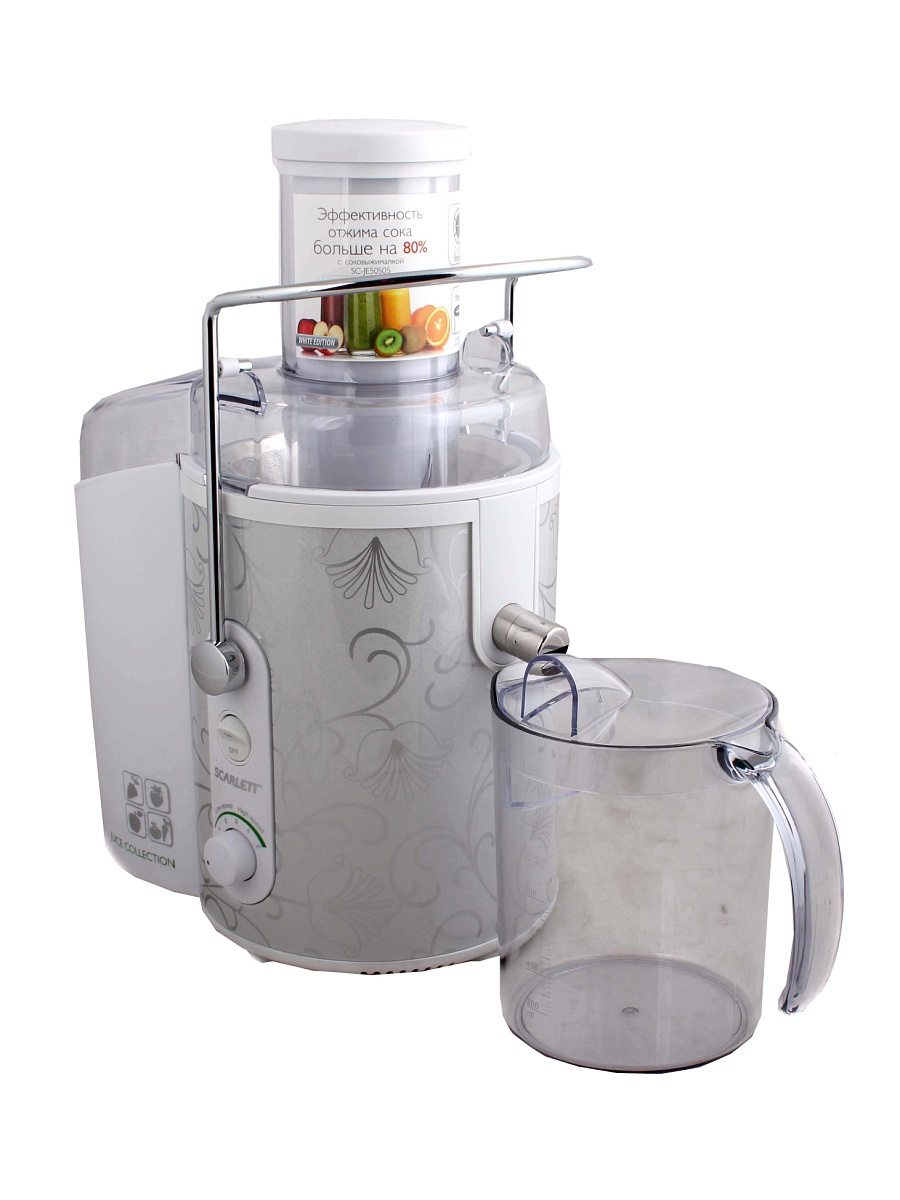 Haushalts-Universalgerät zum Auspressen von Saft Scarlett ist für den Heimgebrauch konzipiert, mit einem leichten Körper ausgestattet. Es kann reibungslos für zehn bis zwanzig Minuten arbeiten. Während dieser Zeit ist die Ausgabe etwa drei Gläser frisch. Ein weiterer Betrieb ist unerwünscht, um ein Ausbrennen des Geräts zu vermeiden.