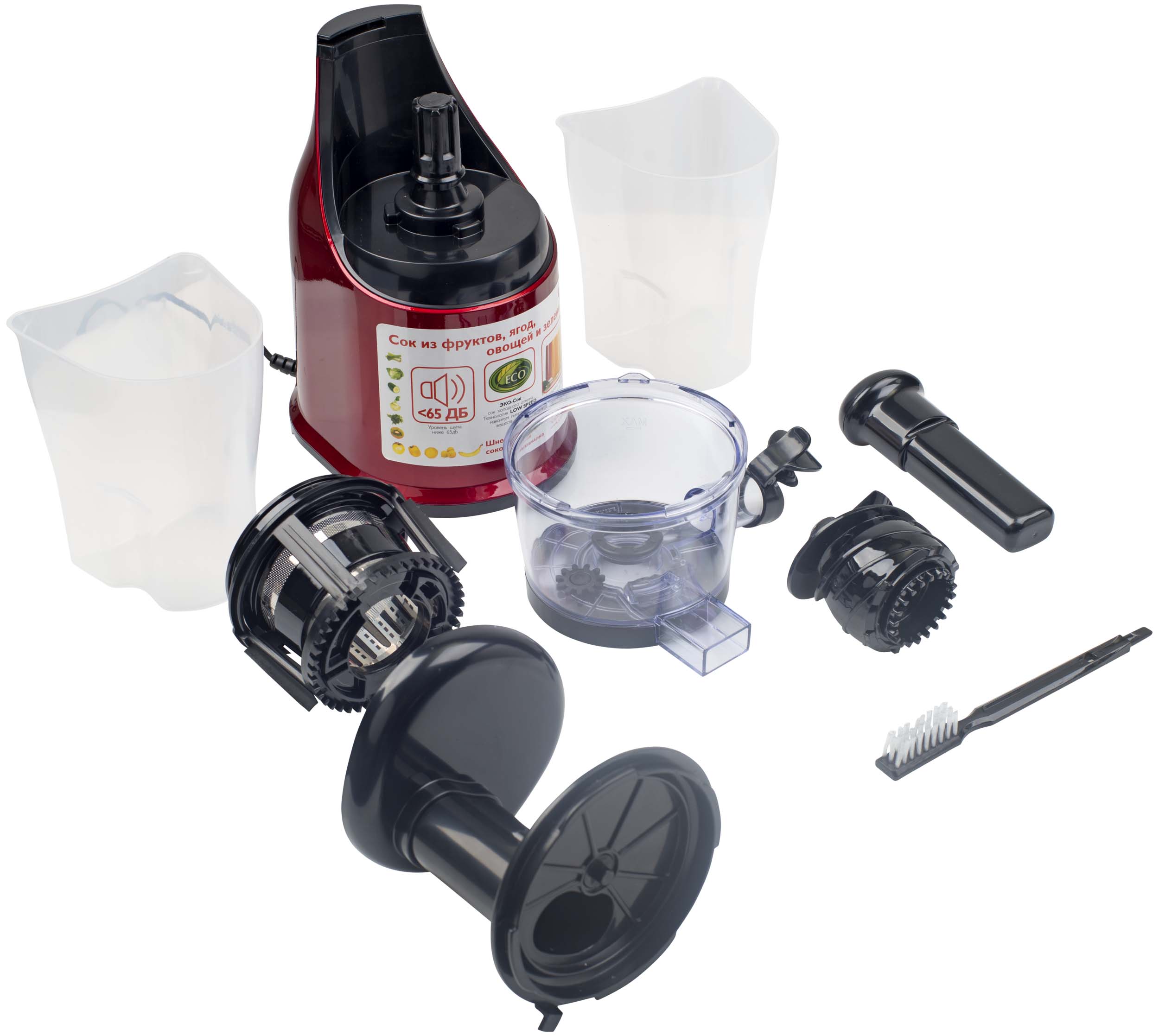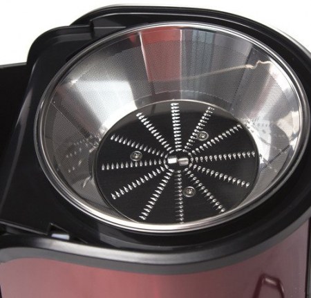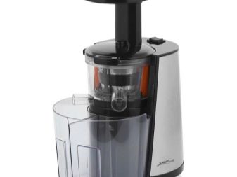 Die Leistung des Modells beträgt nur 300 Watt, aber es ist in der Lage, den Saft nicht nur aus Früchten und Beeren, sondern sogar aus Fruchtsamen zu quetschen. Trinken am Ausgang enthält Zellstoff. Ein weiterer unbestreitbarer Vorteil der Einheit ist die Geräuschlosigkeit. Es gibt eine Funktion der automatisierten Emission von Ölkuchen. Das Stahlgehäuse macht den Entsafter unverwundbar, wenn er versehentlich fallen gelassen wird. Der Preis des Produkts übersteigt nicht dreitausend Rubel.
