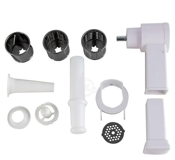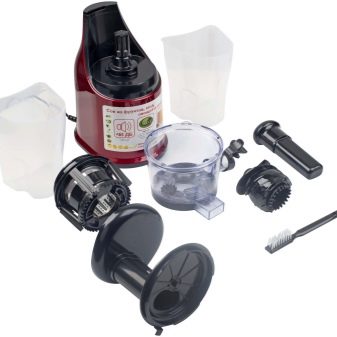 Der Entsafter ist mit Düsen mit zusätzlicher Funktionalität angereichert. Gewöhnlich kommt es mit einer kegelförmigen Düse für Früchte der Zitrusfruchtfamilie, einer Reibe und einem Schieber für Rohstoffe. Zusätzlich zu den oben genannten, kann es spezielle Tipps für bestimmte Arten von Obst geben. Die teureren Vertreter der Saftpresseinheiten sind mit einer automatischen Reinigung des Siebs ausgestattet.