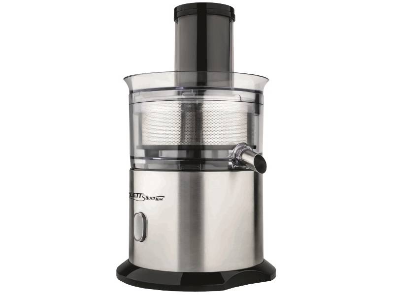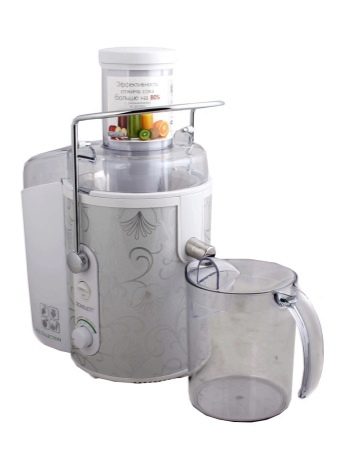 Preiswerte Budget-Option - mechanisches Modell mit einer Kapazität von 1200 Watt, die einen Zweigang-Modus hat. Squeezes ein Glas Saft in Sekunden. Die Kapazität des Flüssigkeitsreservoirs beträgt 750 ml. Das Zentrifugengewebe besteht aus einer langlebigen Edelstahllegierung in Kombination mit Titan. Werde ein unverzichtbarer Helfer in der Küche. Von den Minuspunkten - es wird nicht empfohlen, länger als zehn Minuten zu verwenden. Nach der angegebenen Zeit ist es besser, das Gerät abkühlen zu lassen.
