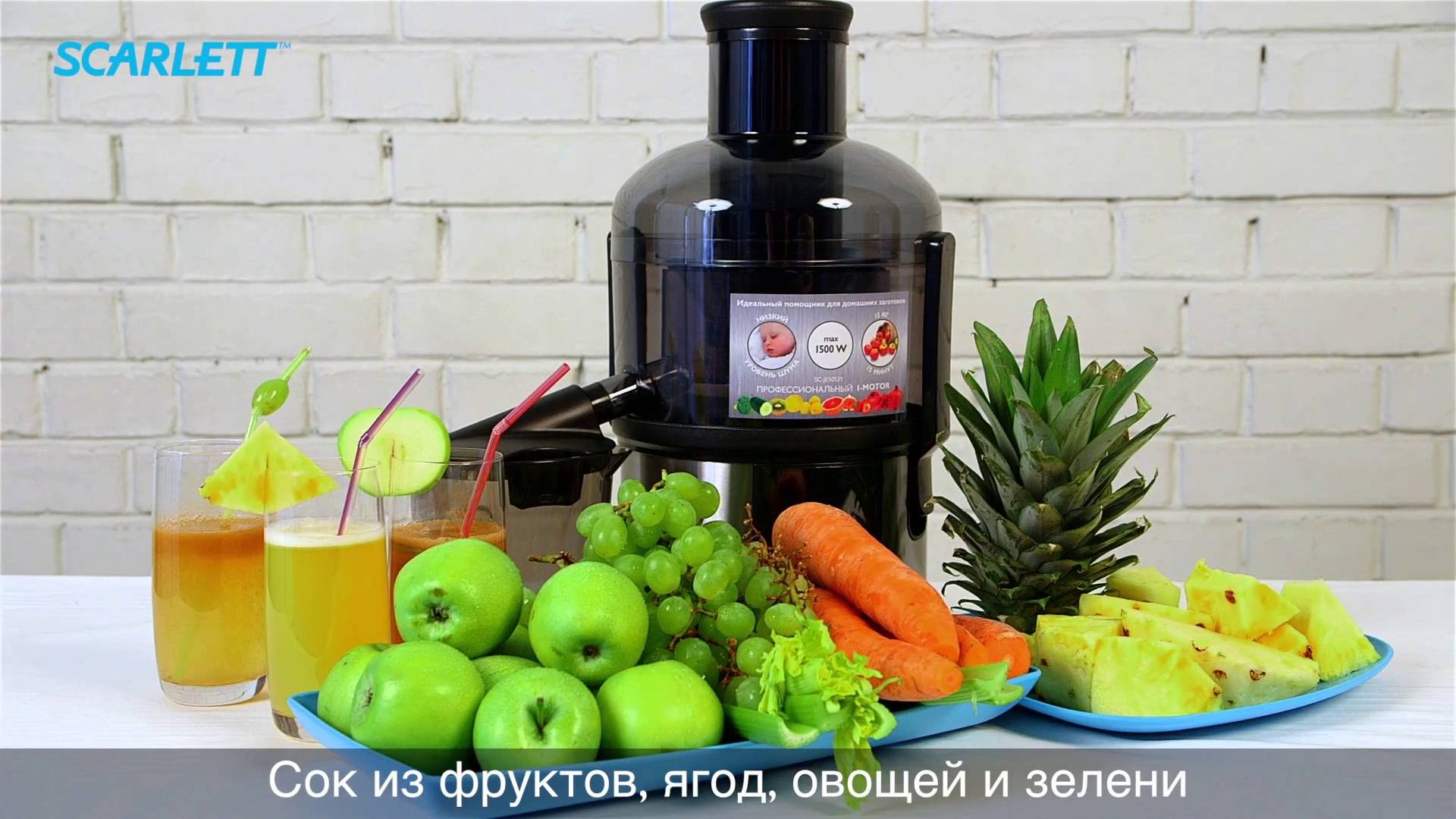 In dem Video unten sehen Sie den Entsafter Scarlett SC-JE50S08, der Apfel-Karottensaft zubereitet.
