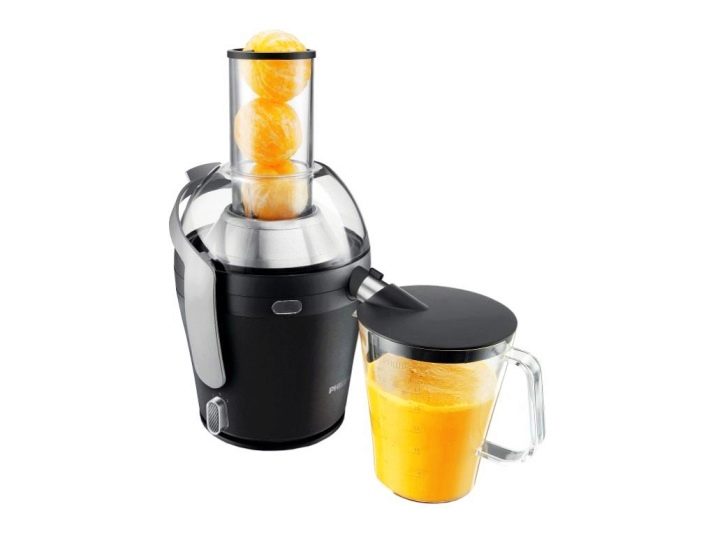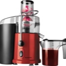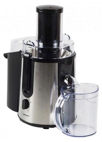 Im Allgemeinen ist das Funktionsprinzip von Zentrifugalentsaftern ziemlich einfach. Gleichzeitig arbeiten sie ziemlich schnell und machen einen guten Job. Darüber hinaus ist dieser Entsafter eine der preisgünstigsten Optionen. Es hat auch eine breite Öffnung zum Eintauchen der Früchte, so dass Sie die Zutaten vor dem Start des Geräts nicht schneiden müssen. Es sollte beachtet werden, dass der Saft im Prozess dieses Modells, es wird ein bisschen sauer.