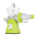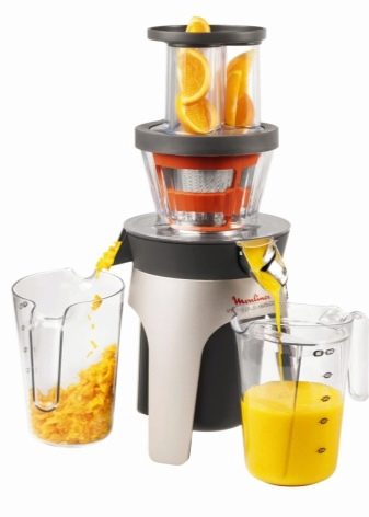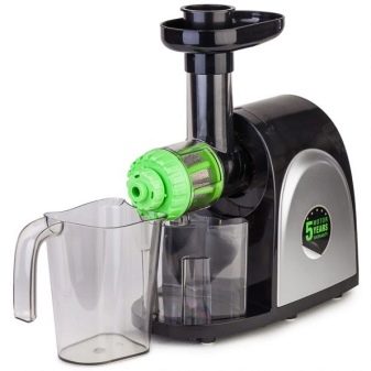 Solche Vorrichtungen sind einem Fleischwolf optisch ähnlich. Ihre Art der Arbeit unterscheidet sich je nach Art des Entsafters.Der elektrische Schneckenquetscher arbeitet aufgrund des Motors und der zweite Typ ist eine mechanische Vorrichtung, die von Händen gesteuert wird. Alle diese Entwürfe sind eine Schraube oder zwei Schrauben, sowie horizontale oder vertikale Art.