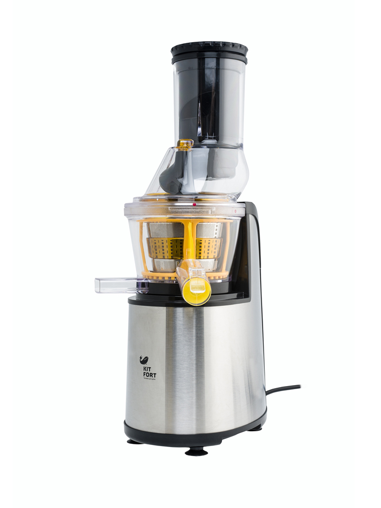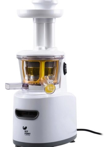 Drehen Sie dieses Schraubendesign hat eine eher niedrige Geschwindigkeit. Seine Arbeit beginnt wie folgt: Im Halsbereich müssen die zum Pressen bestimmten Produkte eingetaucht werden, die von der Schnecke zerkleinert und zum Filter bewegt werden, und der Kuchen kommt bereits mit trockenen Streifen durch spezielle kleine Löcher heraus.Der Betrieb dieses Geräts ist zeitlich begrenzt, seine Dauer beträgt zehn Minuten pro Annäherung. Um das Gerät vor Überhitzung zu schützen, ist es nach 20 Minuten Dauerbetrieb mit einer automatischen Abschaltung ausgestattet.