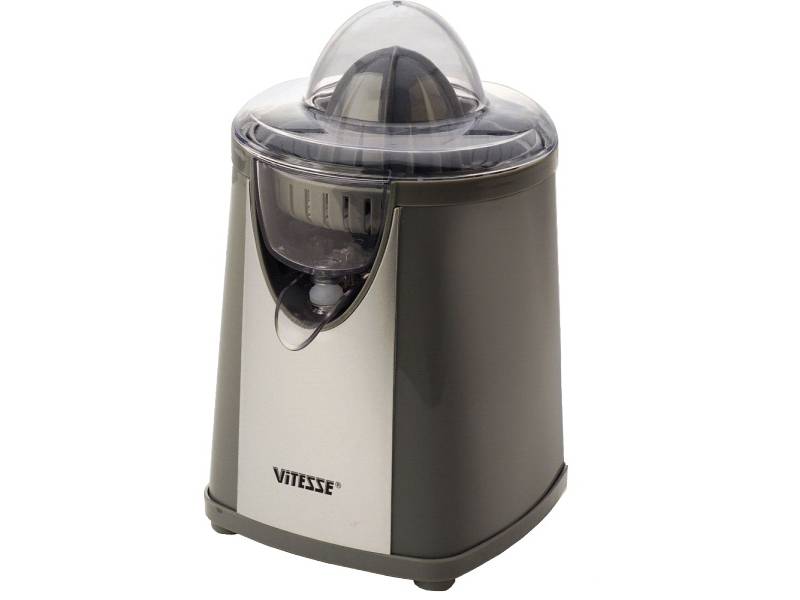 Alle Entsafter sind in Universal unterteilt, die in der Lage sind, den Saft von jedem Gemüse und Obst, und Zitruspresse drücken. Mit Hilfe der zweiten Art dieses Geräts ist es möglich, nur Zitrusfrüchte von Orange, Grapefruit, Zitrone, Pomelo, Suite, Mandarine und andere zu quetschen. Ihre Aktion basiert auf der Bewegung des Motors. Außerdem besteht das Design aus einer kegelförmigen Düse mit sperrigen Rippen, auf der die Hälfte der ganzen Frucht angeordnet ist. In dem Kit ist auch ein Behälter zum Zusammenstellen des erhaltenen Saftes enthalten.