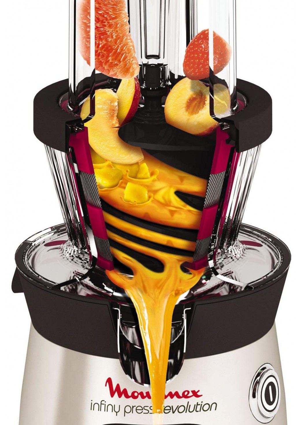 Spin Juicer eignet sich besser für Beeren, Obst und Gemüse wie Bananen, Tomaten oder Erdbeeren. In dieser Hinsicht ist diese Funktion dem Entsafter in der Vielfalt unterlegen, aber das Spinnen hat eine große Geschwindigkeit und Produktivität.