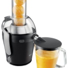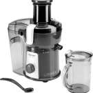 Dieser Zentrifugalentsafter hat die Wahl eines Mischers und erlaubt Ihnen, Früchte und Gemüse ungeschält und nicht gehackt zu laden. Transparente Wände des Tanks helfen, die Menge an Flüssigkeit im Inneren zu sehen, und hohe Leistung ermöglicht es Ihnen, sofort einen Liter Saft vorzubereiten.
