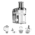 Das Modell hat Optionen für die Herstellung von Saft und Püree und zum Sammeln von Kuchen. Es funktioniert mit Hilfe von Zwei-Rückwärts-Rotation von Teilen und hat eine Einschlusssperre, wenn der Deckel nicht geschlossen oder fest geschlossen ist.