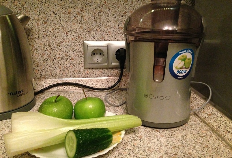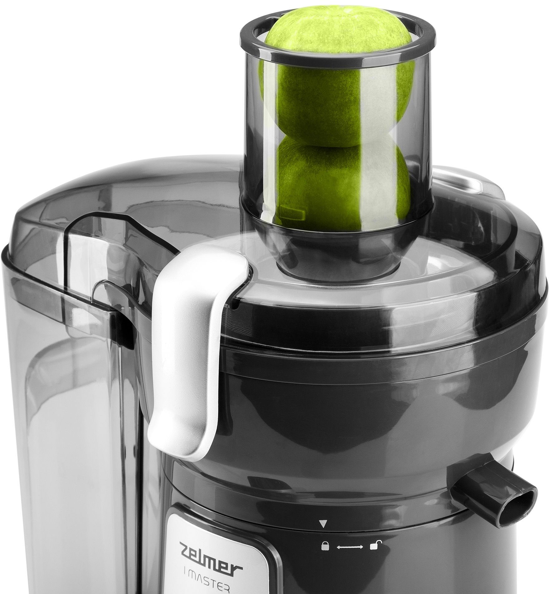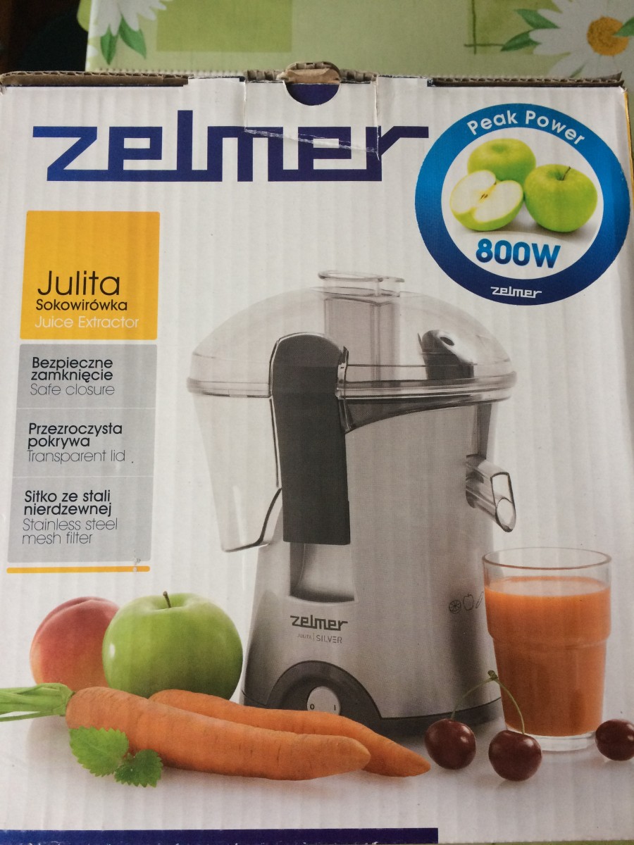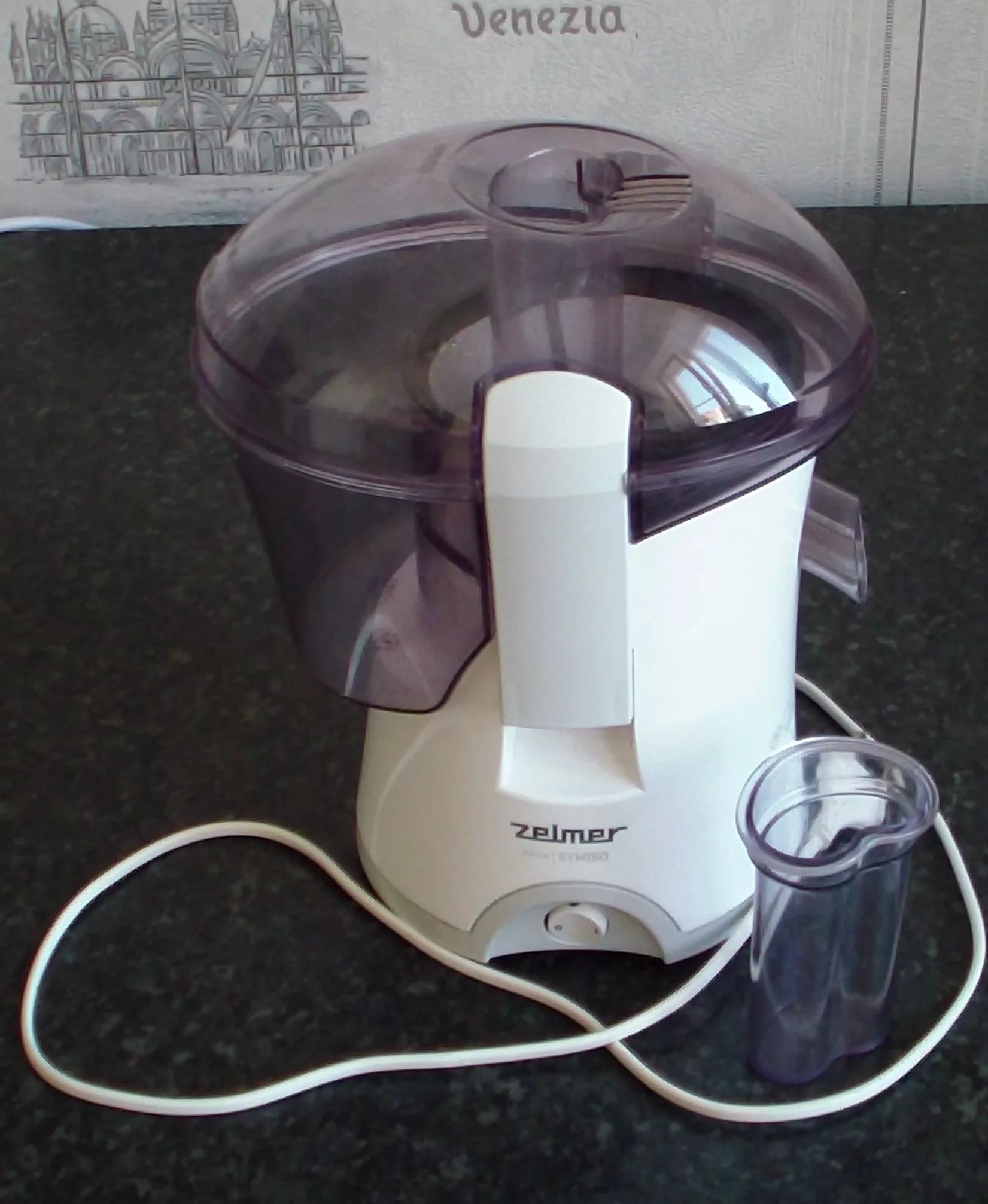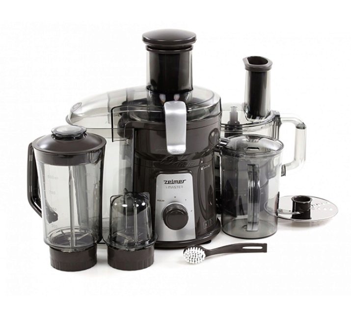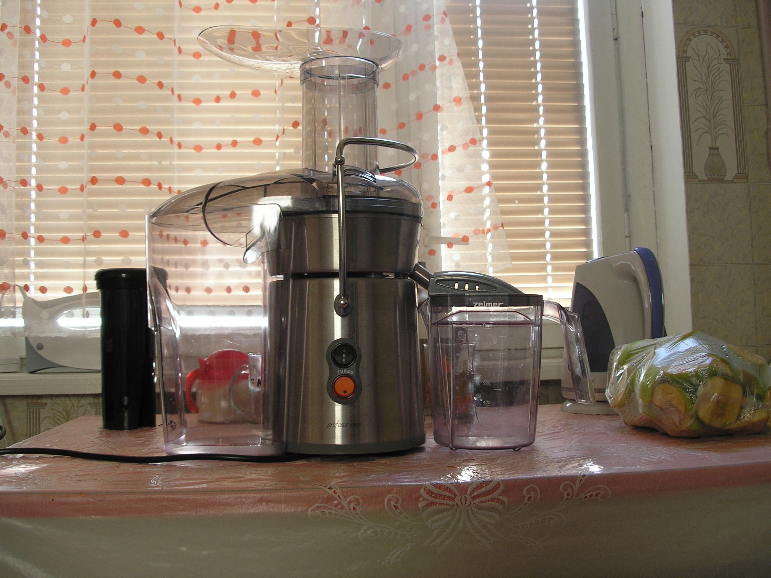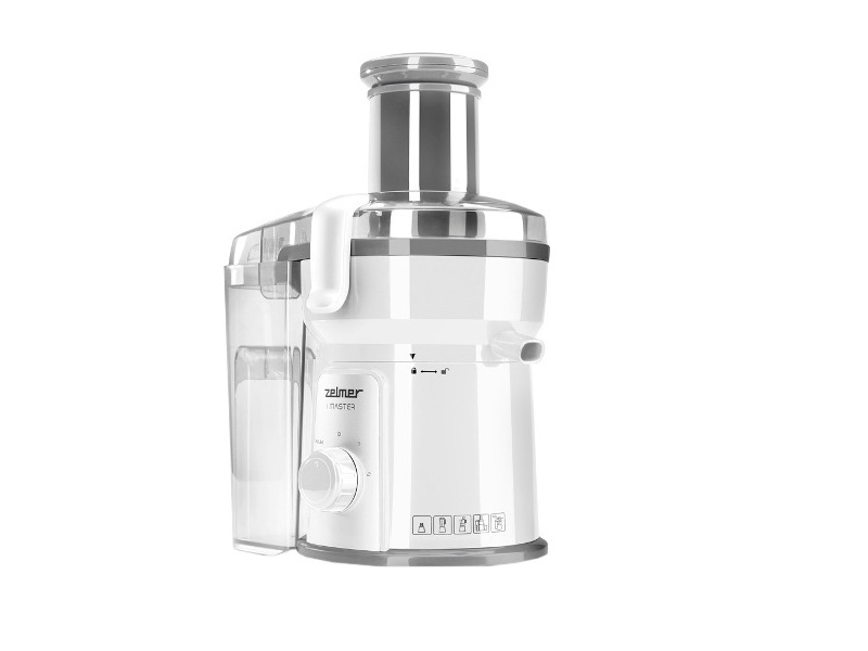 Ein anderes Modell aus der gleichen Serie - Zelmer 486 - hat den Schutz der Geschwindigkeit und schaltet sich nicht ein, wenn der Deckel nicht fest zugedeckt ist.Die meisten dieser Entsafter können leicht einen Mixer oder eine Kaffeemühle herstellen.
