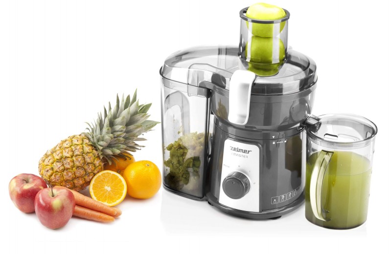 Universal-Modelle haben eine Leistung von bis zu 800 W, 2-Gang-Modus und Turbo-Option für die Reinigung des Filters und Schaumabscheiders. Ein gutes Beispiel ist Zelmer 496. Der Vorteil solcher Modelle ist, dass der Prozess vollständig automatisch abläuft. Sie müssen nicht einmal die Früchte und das Gemüse schälen - sie können direkt in die Schale in den Entsafter geladen werden. Die Geschwindigkeit solcher Geräte ist am schnellsten - ein Liter pro Minute der Zeit.