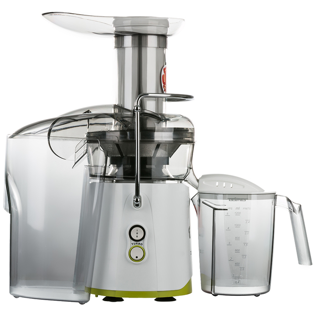 Ein Beispiel für ein Zentrifugalmodell ist der Zelmer 377 Jilita.. Das Prinzip dieses Modells ist, dass sich der Kuchen im Kreis bewegt und der Saft durch ein spezielles Loch im Glas fließt. Der rotierende Teil wird als Separator bezeichnet. Diese Düse kann sowohl in Form eines Konus als auch in Form eines Zylinders vorliegen. Je mehr Umdrehungen pro Minute die Maschine produziert, desto höher ist die Qualität der Saftgewinnung. Die schwierigste Sache mit harten Früchten und Gemüse, weil sie schwer zu quetschen sind, und daher die Qualität des Saftes niedriger wird.