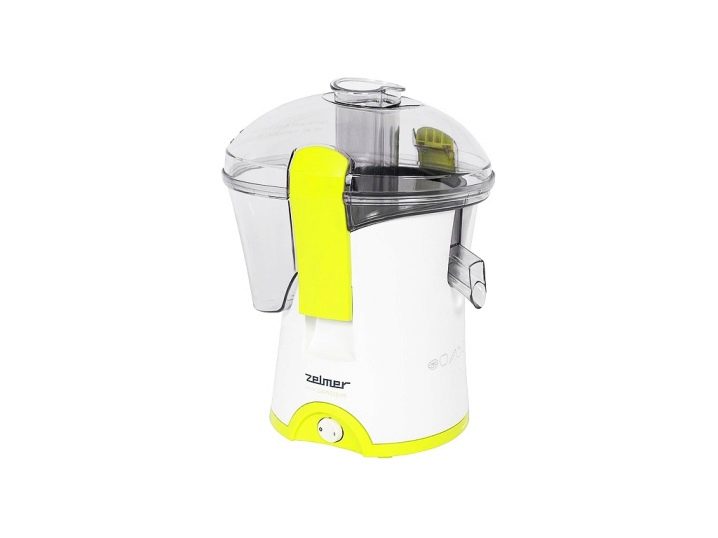 Einzelgeschwindigkeit - die billigsten und am einfachsten zu bedienenden Geräte. Ein auffälliges Beispiel ist der Entsafter Zelmer 377. Er hat eine Leistung von 85-250 W, die Verpackung enthält keinen Behälter für den fertigen Saft. Zu den zusätzlichen Funktionen gehören die Abschaltung bei Überhitzung und der Schutz vor versehentlicher Aktivierung.