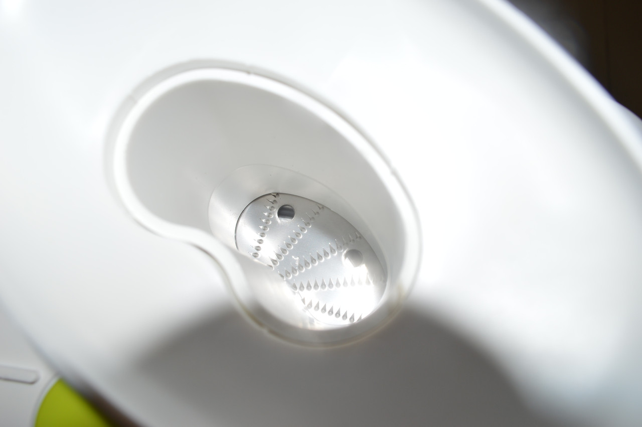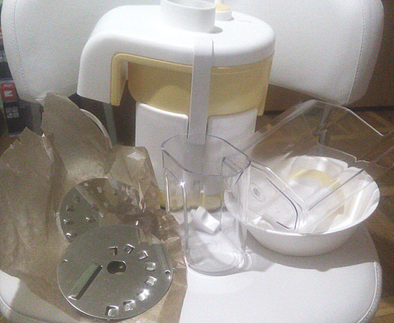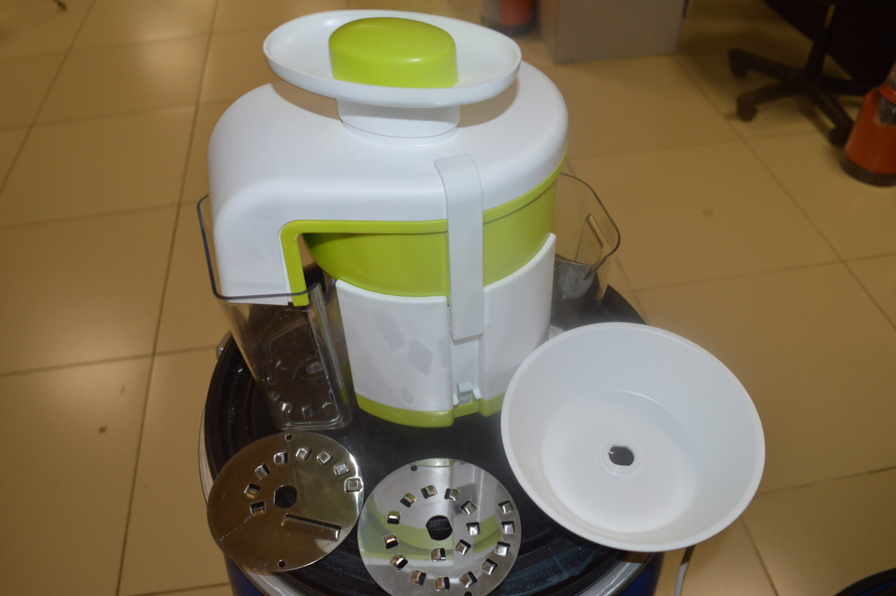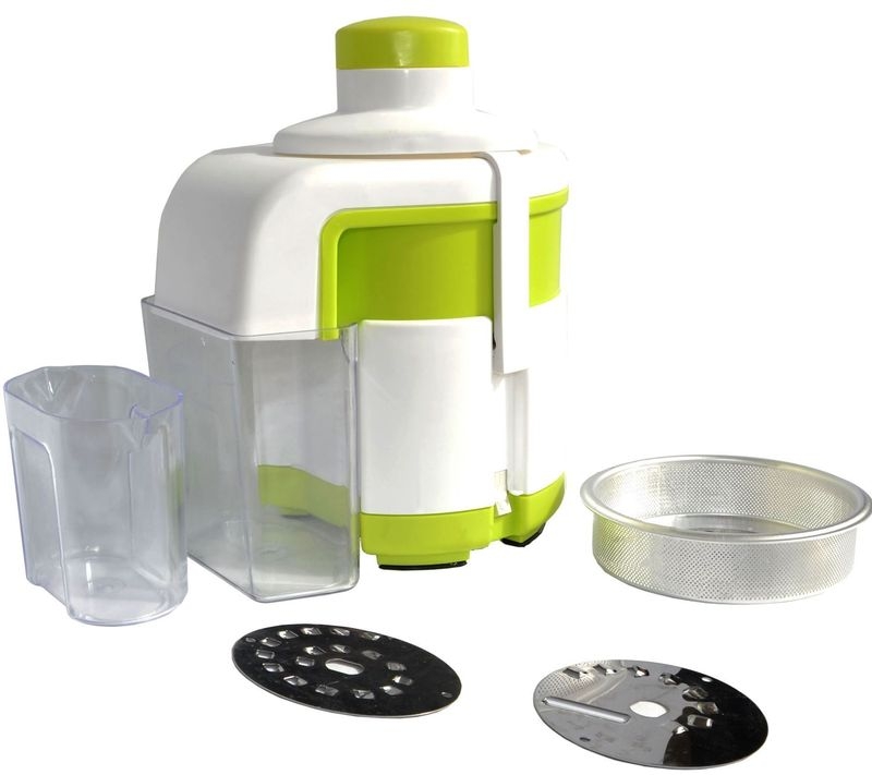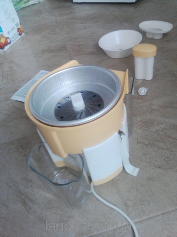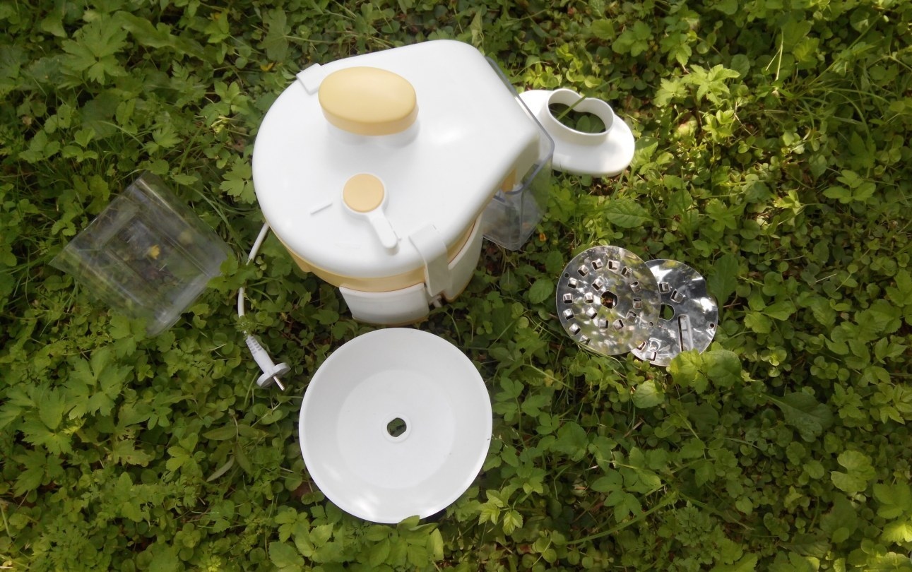 - Enthalten sind mehrere Düsen, die das Gerät vielseitig machen. Sie können nicht nur frischen Saft bekommen, sondern auch auf Kosten der Zerkleinerung von Obst und Gemüse.