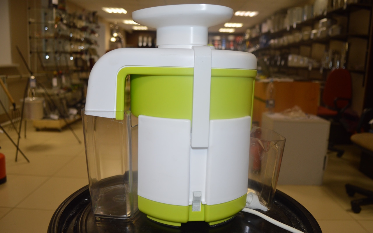 In der Vorrichtung "Zhuravlinka SVSP 301" gibt es keine Hackscheiben, weil sein Zweck das übliche Auspressen von Saft ist. Dies betrifft auch die Preiskategorie der Entsafter. Wenn Sie eine Maschine benötigen, um den Saft zu bekommen, sollten Sie nicht für zusätzliche Funktionen zu viel bezahlen.