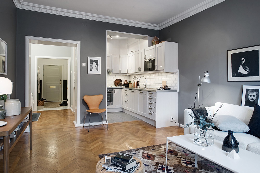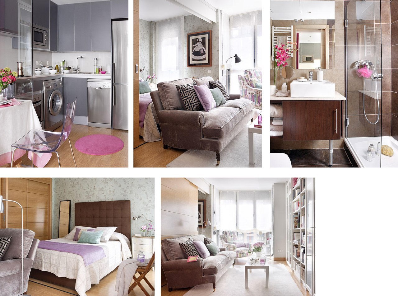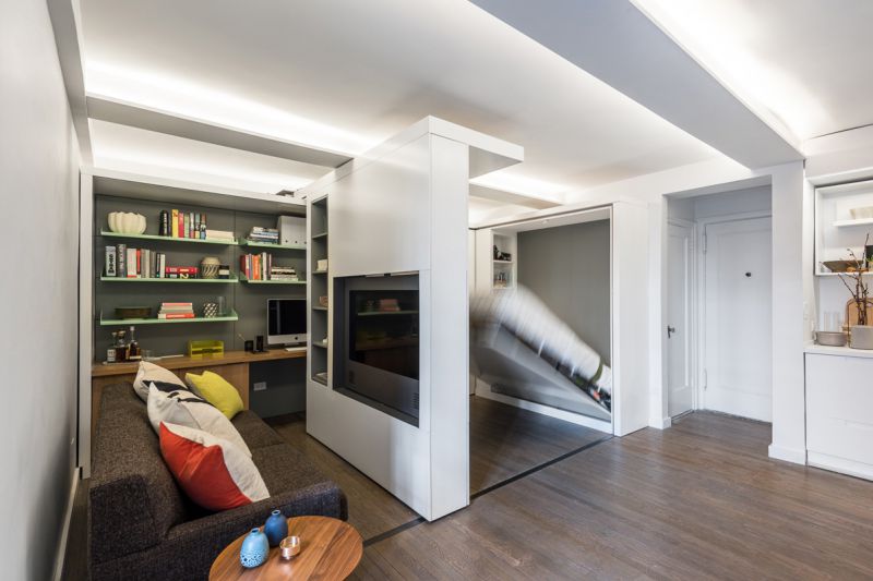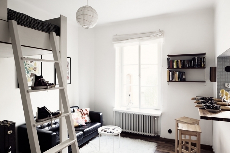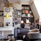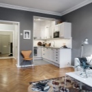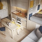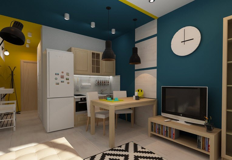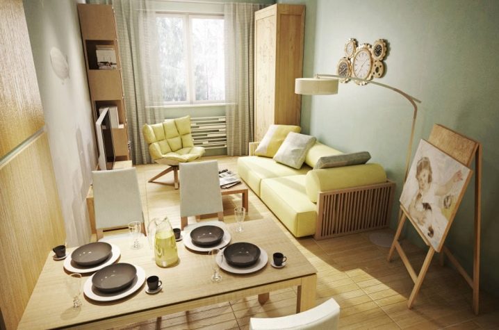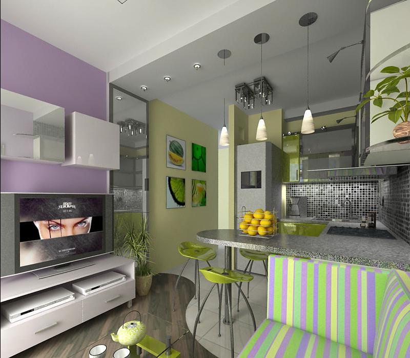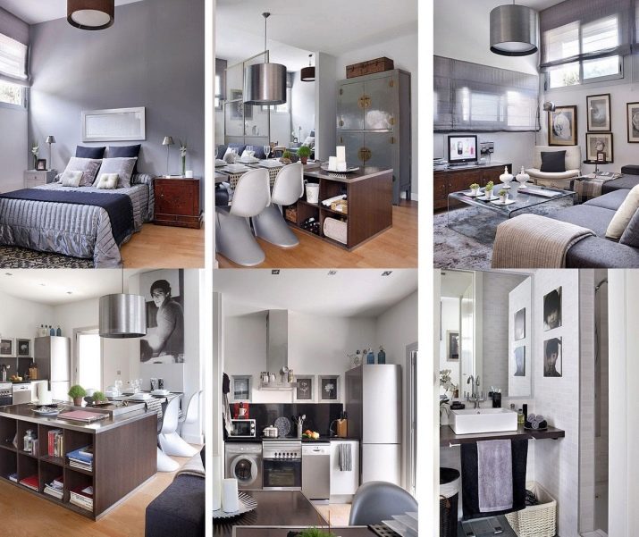 Wenn Sie verschiedene funktionelle Bereiche im Inneren eines kleinen Studios schaffen und differenzieren können, wird es Ihnen leicht, Komfort im Haus zu schaffen, Sie können Gäste treffen und Parteien arrangieren, die nicht in einen eng ausgestatteten Raum passen. Die Hauptsache ist, zu entscheiden, welche Zonen Sie benötigen. Wenn Sie lange Familienessen nicht mögen, dann brauchen Sie keinen Essbereich, Sie können ihn durch einen bequemen Verwandlungstisch oder einen stilvollen und originellen Bartresen ersetzen. Auch wenn Sie selten Gäste empfangen, können Sie das Wohnzimmer in Ihrem Heimstudio nicht einrichten, Sie können es bei Bedarf durch ein geräumigeres Schlafzimmer, ein Arbeitszimmer oder ein Kinderzimmer ersetzen.