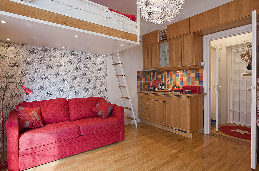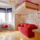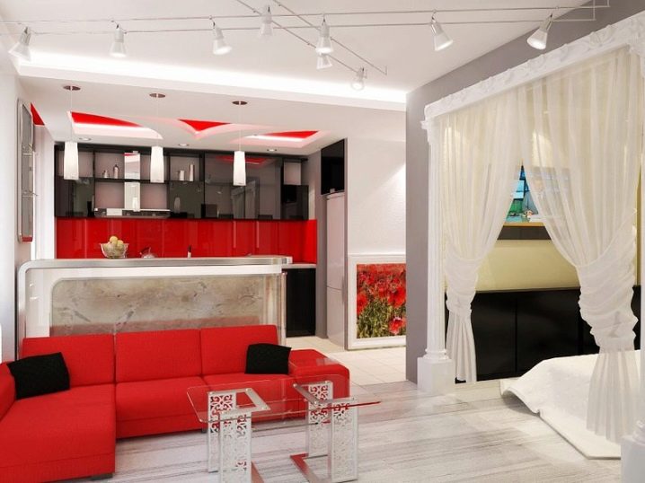 Heute sind Studio-Apartments sehr beliebt bei jungen Paaren. Eine solche Wohnung oder Haus ist ein Gemeinschaftsraum, in dem es keine Trennwände gibt, und es ist nur auf vier Wände beschränkt. So gibt es in einem Haus oder in einer Studiowohnung in der Regel eine Küche, ein Wohnzimmer, ein solches Zimmer muss je nach den Bedürfnissen der Bewohner einer solchen Wohnung oder eines solchen Hauses auch einen Arbeitsplatz, ein Schlafzimmer oder eine Baumschule enthalten. Alle diese Funktionsbereiche in einem kleinen Studio bilden einen gemeinsamen Raum, der richtig gefüllt werden muss, um die Bodenfläche optimal zu nutzen, aber nicht zu überlasten.