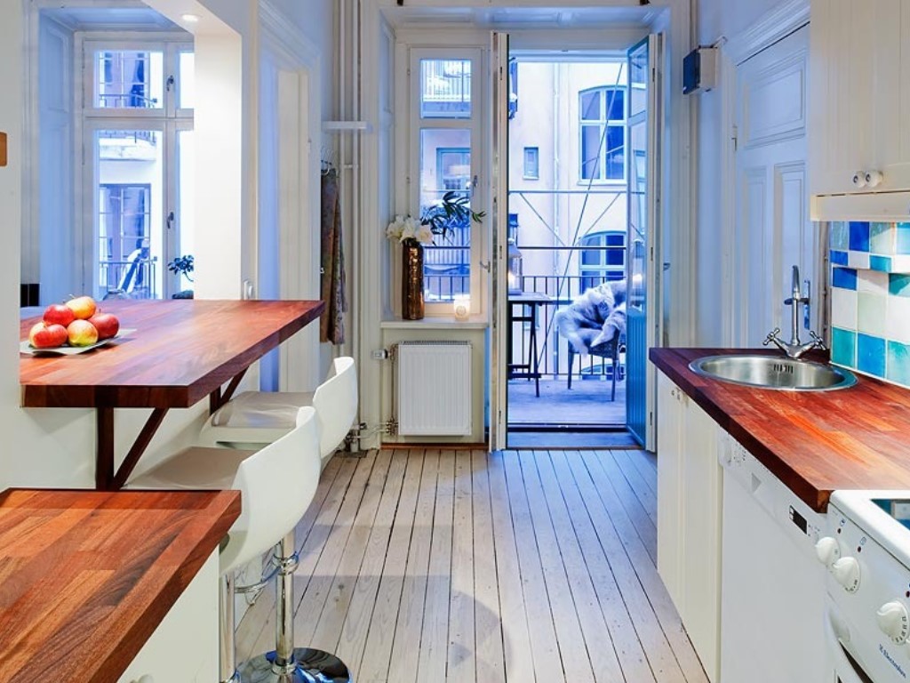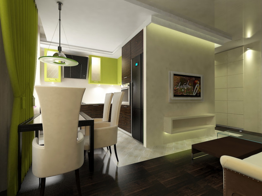Die beliebteste Gestaltungsmöglichkeit für eine Küche in einer Wohnung oder einem Atelierhaus ist die Wohnküche. Mit diesem Design wird die Küche logisch im Wohnzimmer fortgeführt, dh sie geht nahtlos in die Halle über. Gleichzeitig ist eine solche Wohnküche im selben Stil und in derselben Farbpalette gestaltet. Sie können die notwendigen Haushaltsgeräte in einer solchen Küche installieren, zum Beispiel Fernseher, Audiogeräte und andere. Am besten für die Küche-Wohnzimmer passen Einbaugeräte,weil es wenig Platz einnimmt und gleichzeitig sehr modisch und modern wirkt und sogar dazu beiträgt, den Raum komfortabler zu machen.