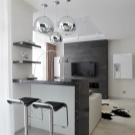 Eine weitere wichtige Nuance bei der Erstellung einer Design-Studio-Wohnung von 25 Quadratmetern - Beleuchtung. Es lohnt sich, darauf besonders zu achten. Nicht nur der modische Stil Ihres gemütlichen Nestes, sondern auch die Gesundheit und das Wohlbefinden aller Familienmitglieder werden davon abhängen, wie gut und schön Sie die Lichtquellen arrangieren.
