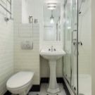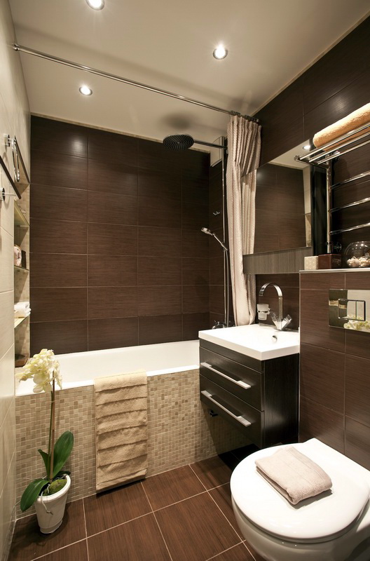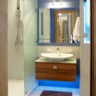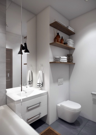 Kleine Wohnungen haben nicht genug Platz. Daher wird es sehr problematisch sein, hier ein komplettes Badezimmer zu installieren. Designer raten zur Verwendung einer Duschkabine. Eine kompakte Toilettenschüssel, eine schmale Spüle, die in einer Vielzahl von Farben dekoriert werden kann, ist ebenfalls geeignet.