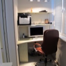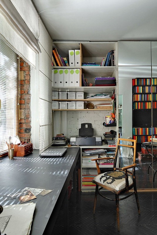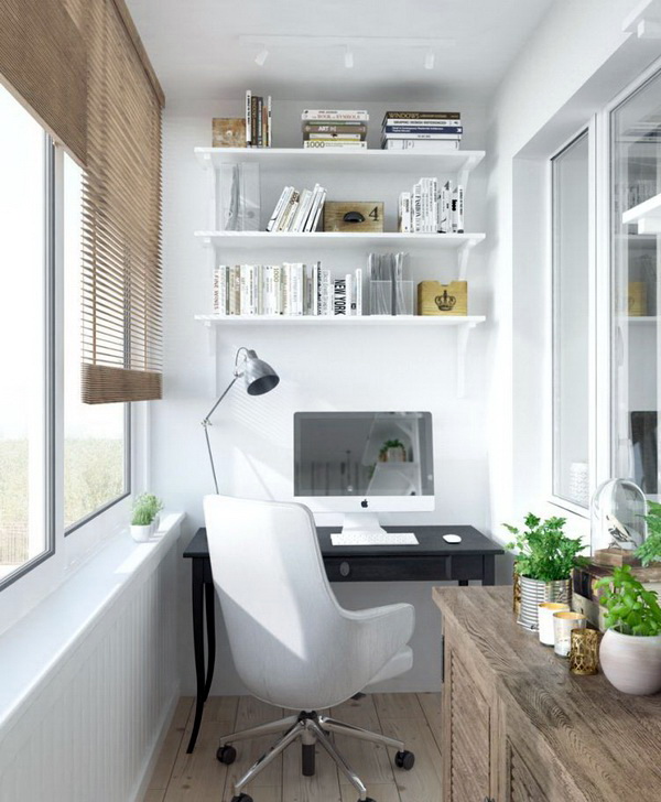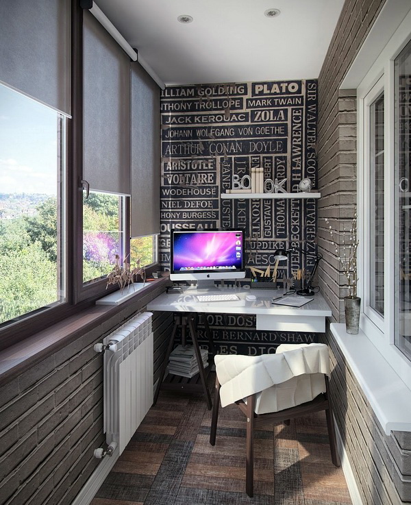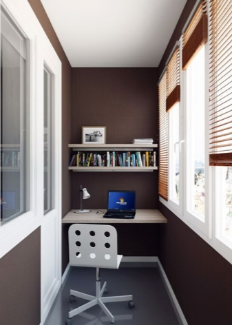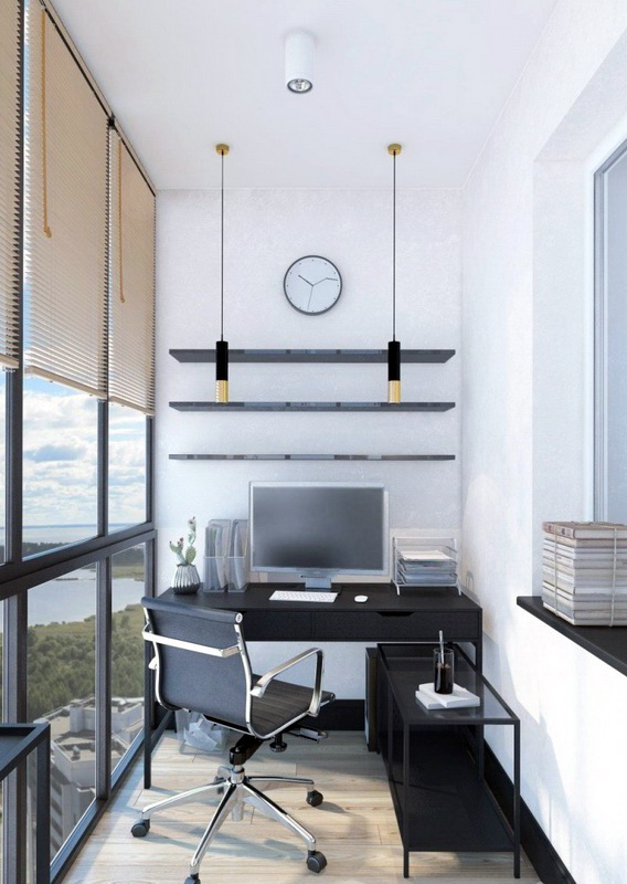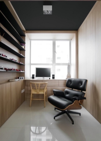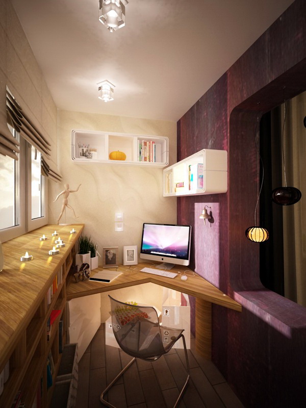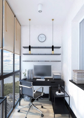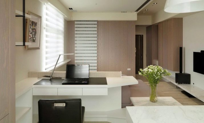 Es sollte beachtet werden, dass im Arbeitsbereich genügend Licht vorhanden sein sollte, um bequem arbeiten zu können. Dies kann durch natürliches Licht oder künstliches Licht erfolgen. Was die Farbe betrifft, ist es besser, eine helle Farbpalette zu verwenden. Dies wird nicht nur den Raum visuell erweitern, sondern auch helfen, sich besser zu konzentrieren und auf der positiven Welle zu bleiben.